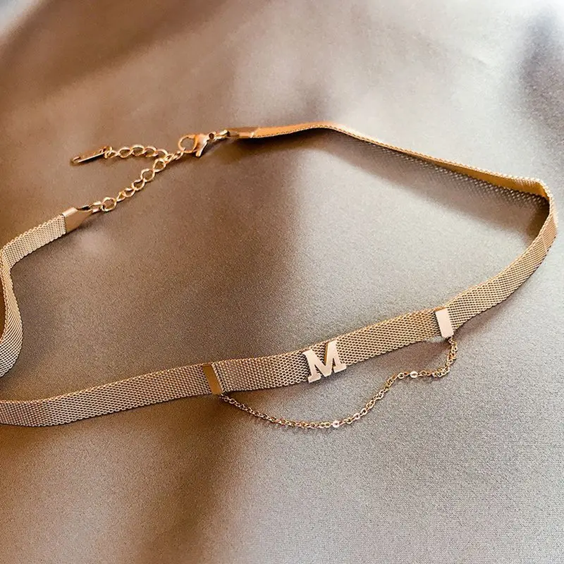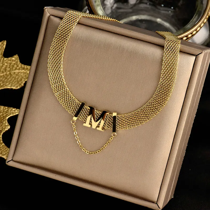 Ожерелье из нержавеющей стали 316L золотого цвета с буквой M для женщин, новинка 2022, модная простая цепочка на шею с широким сетчатым плетением, ювелирное изделие, чокер