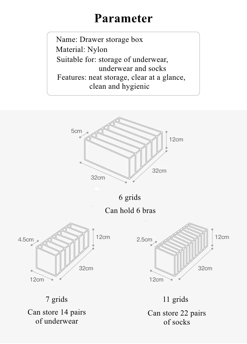 Нейлоновый органайзер для нижнего белья, бюстгальтеров, шкафов для дома, разделитель, коробка для хранения, складной ящик-органайзер, коробка для нижнего белья, шарфов, носков