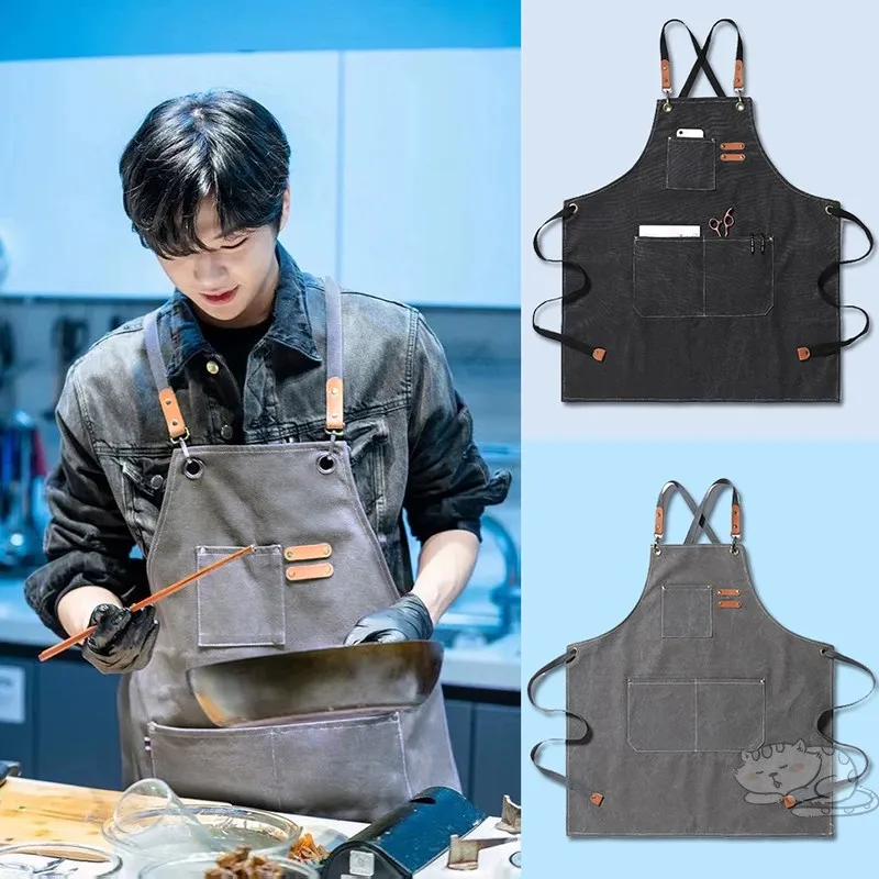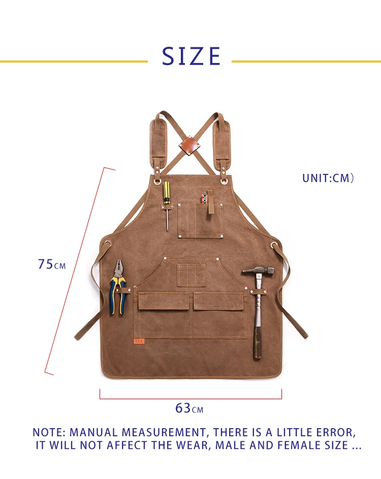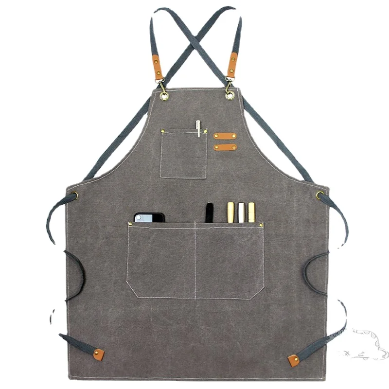 Рабочий Фартук унисекс, прочный брезентовый, с карманами для инструментов, регулируемые поперечные ремни сзади, для плотничных картин, домашнего барбекю