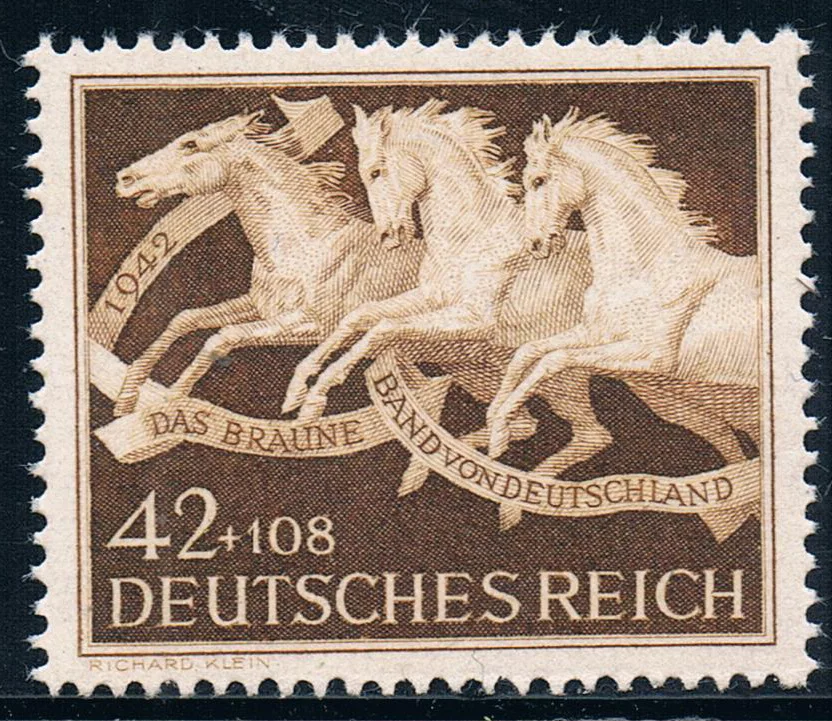 1 шт.компл. Новинка, немецкий почтовый штамп 1942, почтовые гравировочные штампы MNH для конференций по надзору за лошадьми с коричневой лентой, Германия