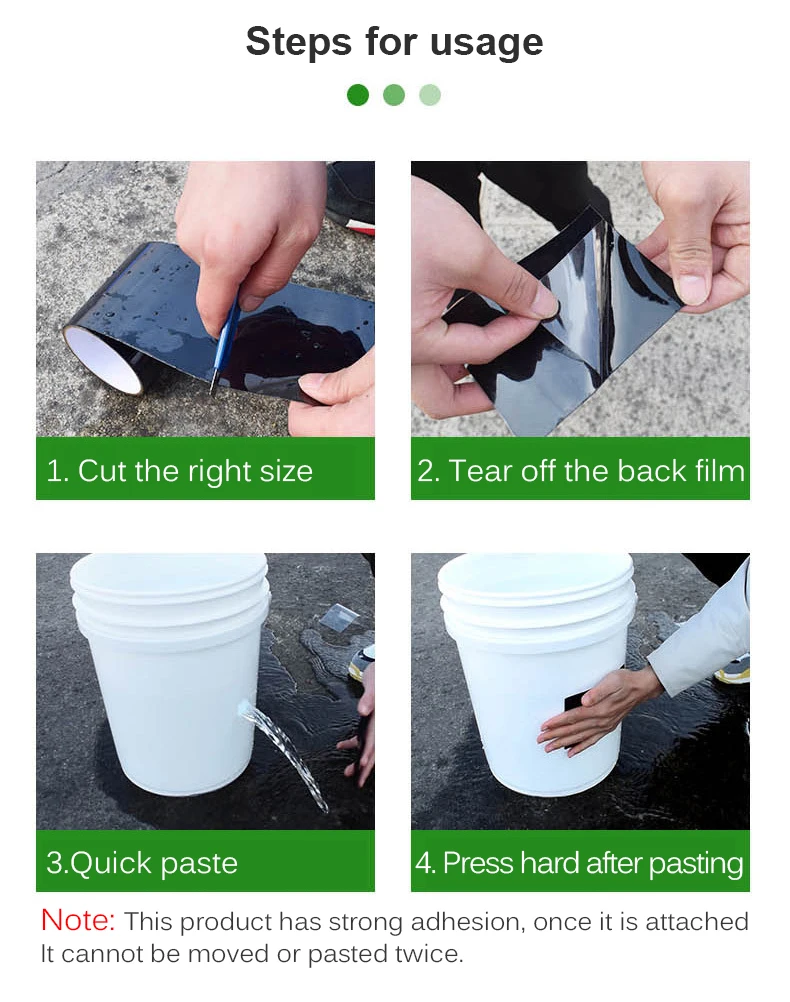 1. Не подходит для неровных поверхностей, давление воды слишком высокое, температура воды слишком высокая.2. Не может использоваться в трубах горячей воды и нагревательных трубах.3. Рекомендуется использовать температуру при 5-50 °, слишком высокая или низкая температура повлияет на вязкость клея.4. Этот продукт очень липкий. Как только он прикреплен, его нельзя повторно прикрепить или повторно прикрепить. Его нельзя использовать снова.
