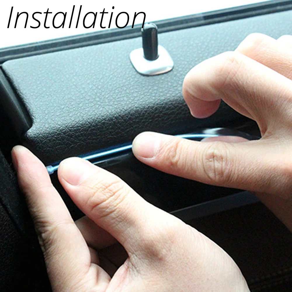 1X двери автомобиля светодиодные полосы задний фонарь атмосфера автомобиля на тросах декоративная интерьерная стенная панель световая приборная панель для чтения Веревка Линия гибкие светодиодные лампы 12V синяя линия