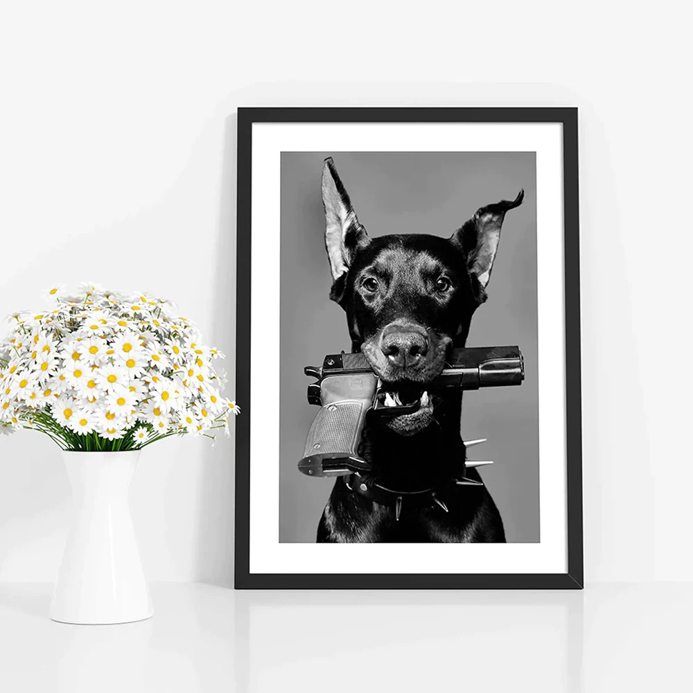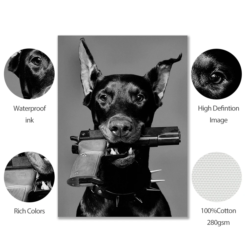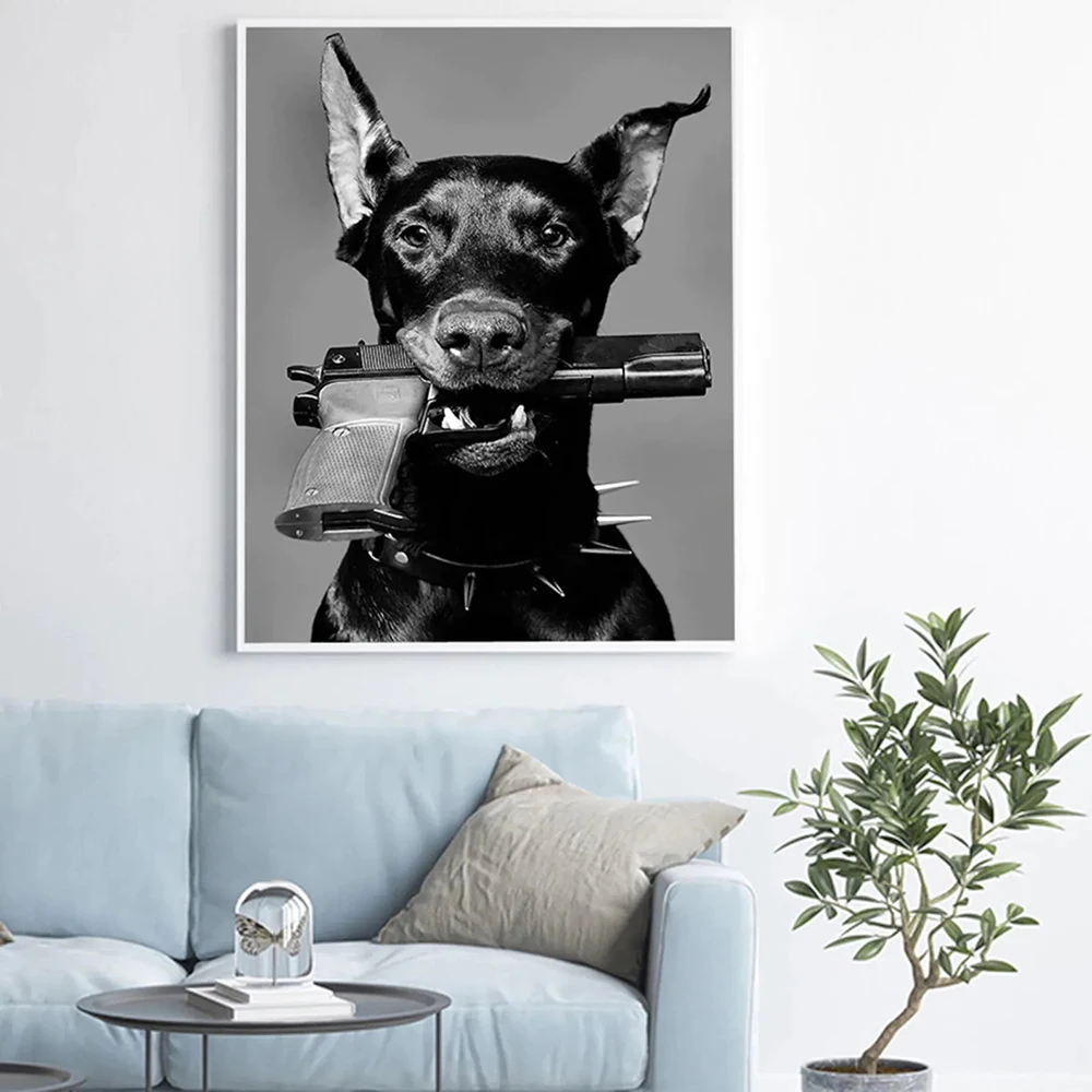 Hypebeast Современный Черный Белый пистолет-Доберман роскошный модный плакат печать на холсте картина на стену картина нордическая комната Домашний декор