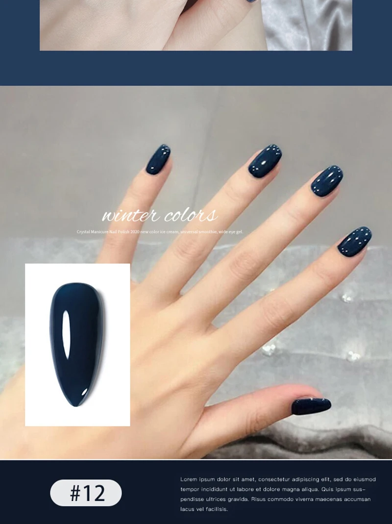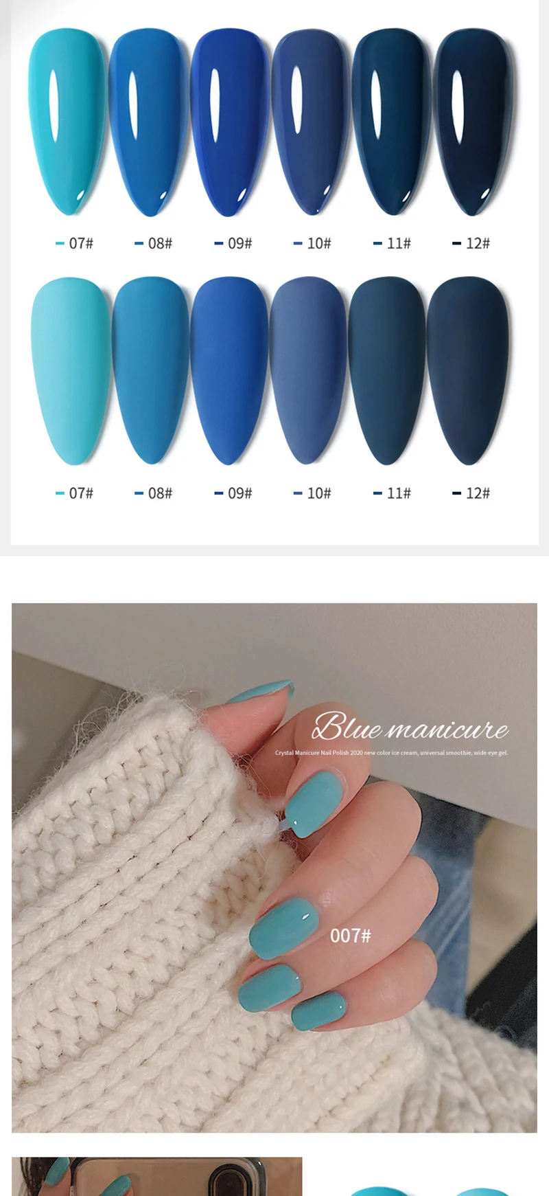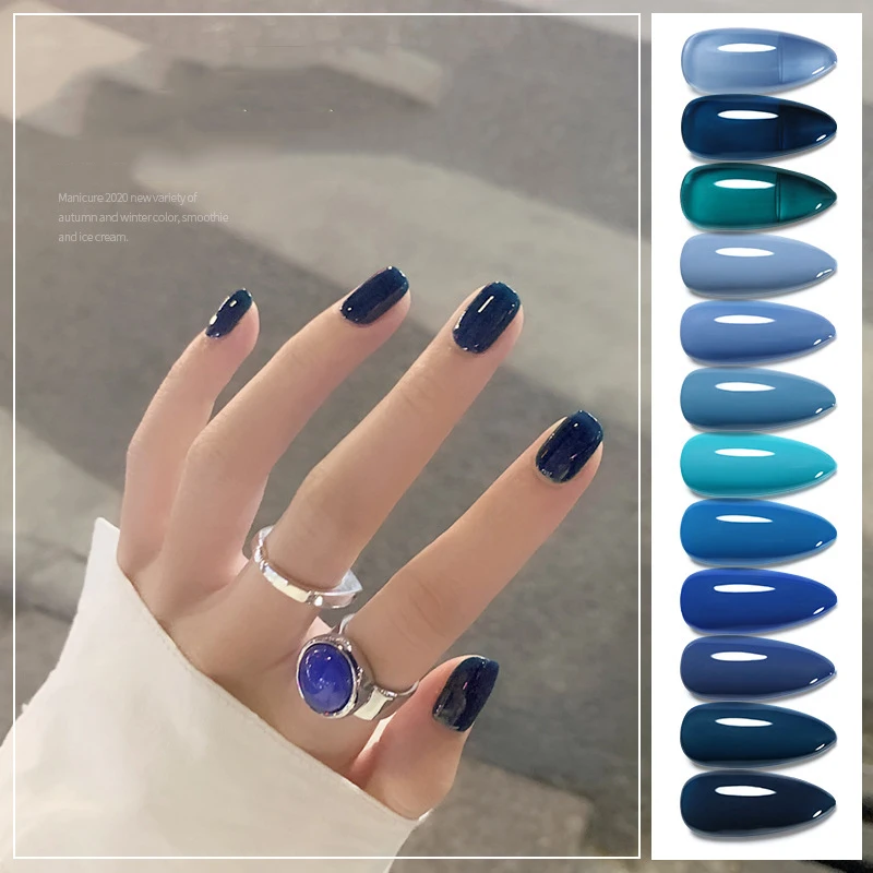 -Цвета: он обеспечивает 12 цветов синего цвета серии лак для ногтей Клей