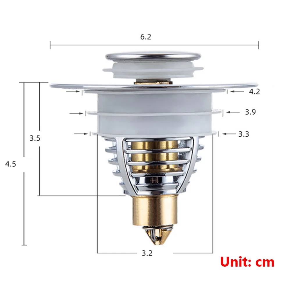 Универсальный всплывающий отскакивающий сердечник, сливной фильтр для умывальника, нержавеющая сталь, нажимная ловушка для волос, раковина, пробка для ванной, стопор, кухонный инструмент для ванной комнаты
