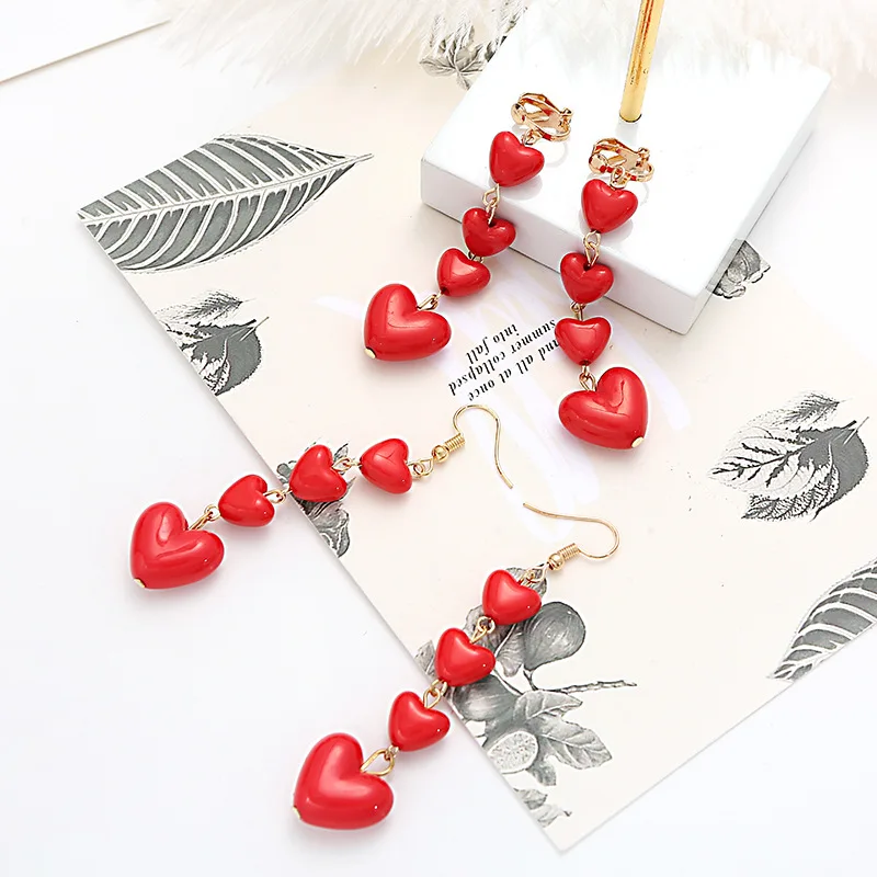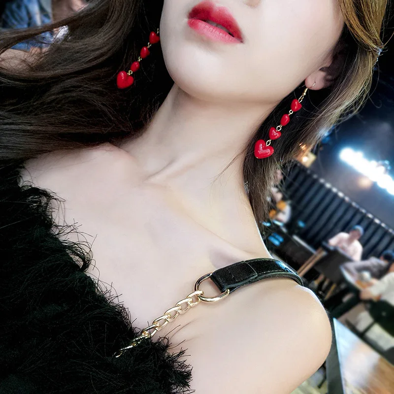Длинные красные серьги в форме сердца, милые корейские милые висячи...