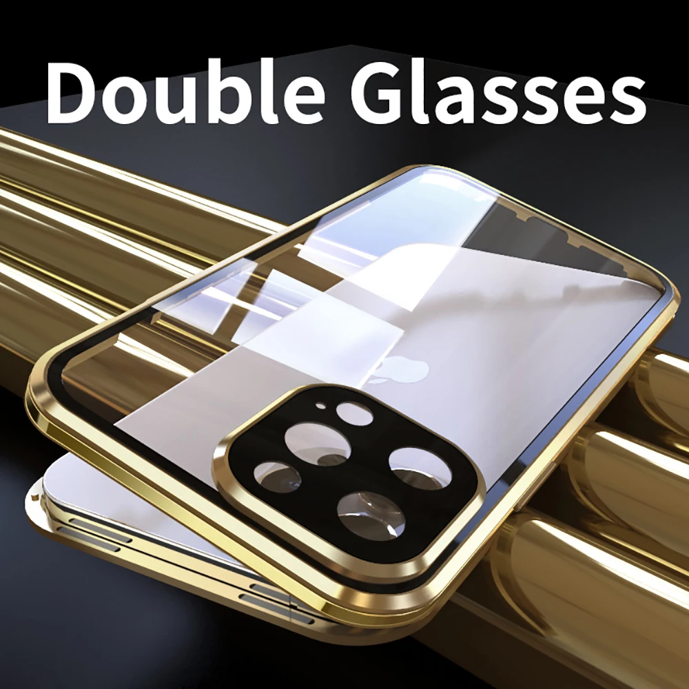 Магнитный чехол для IPhone 13, 12, 11 Pro, XS Max, X, XR Mini с полной защитой 360 градусов, двухстороннее стекло с защитным покрытием для объектива камеры