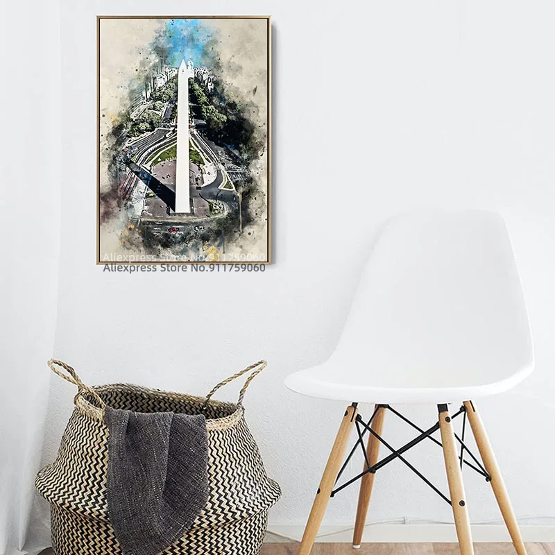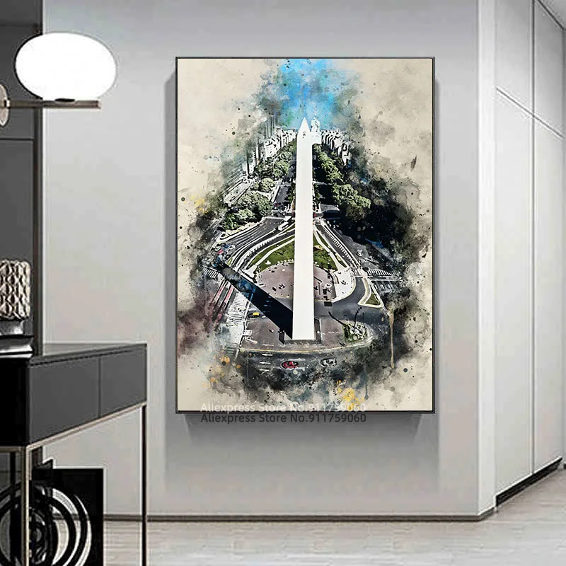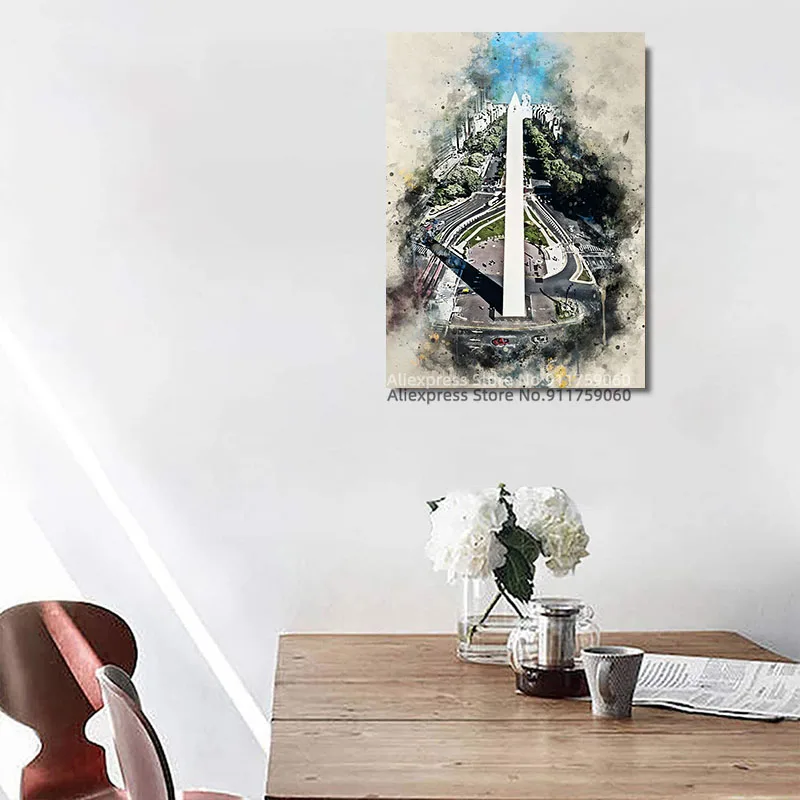 Акварель в стиле аргентинского Буэнос-Айреса с кистями-брызгами Картина на холсте Печать настенных картин для гостиной