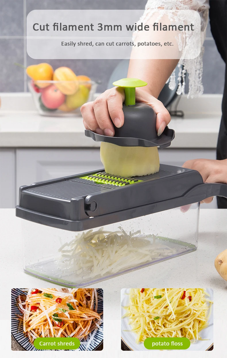 Многофункциональная овощерезка 8 в 1, овощерезка, измельчитель для моркови, картофеля, лука с корзиной, терка, кухонный аксессуар