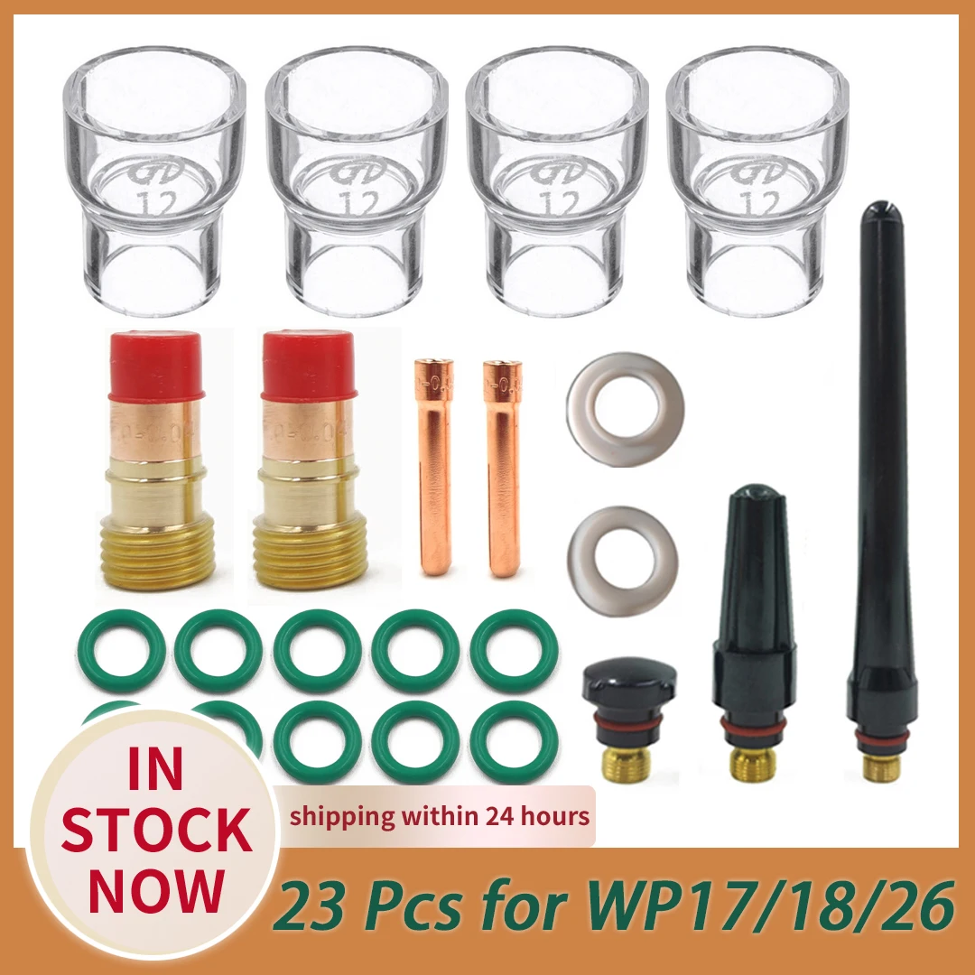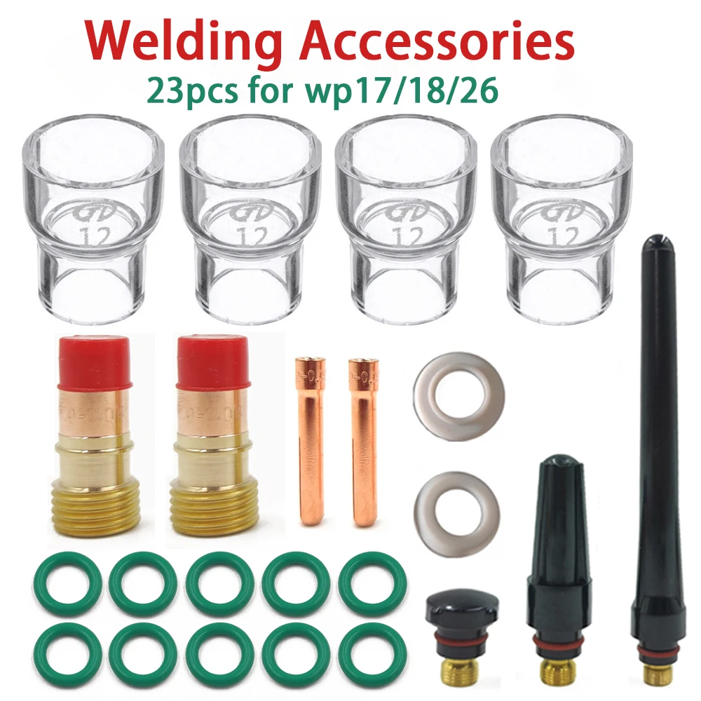 Комплект газовых линз TIG Короткие, 23 шт., Цанга TIG #12, Pyrex, комплект газовых линз TIG, глиноземные сопла для DB SR WP 171826, аксессуары для сварки TIG