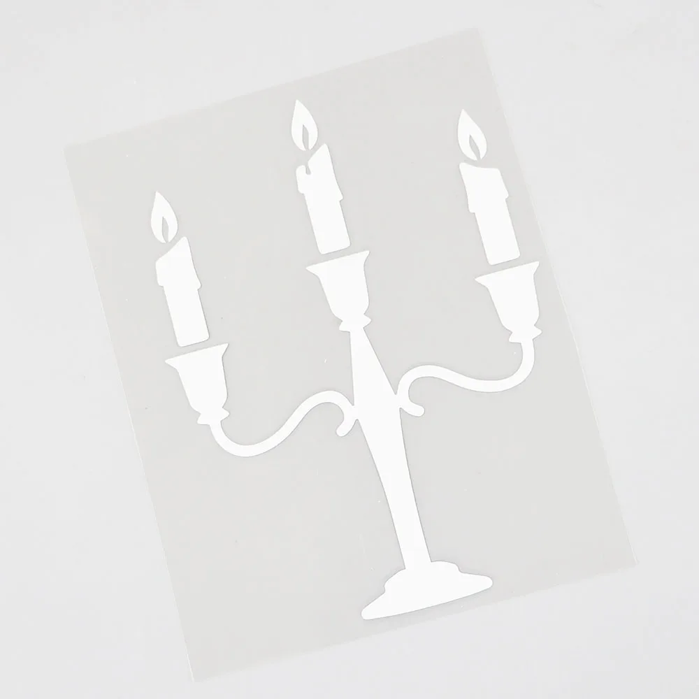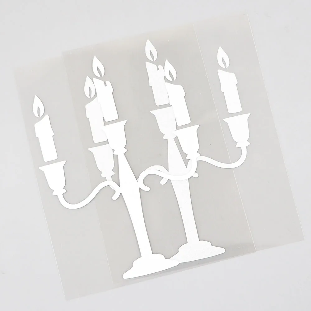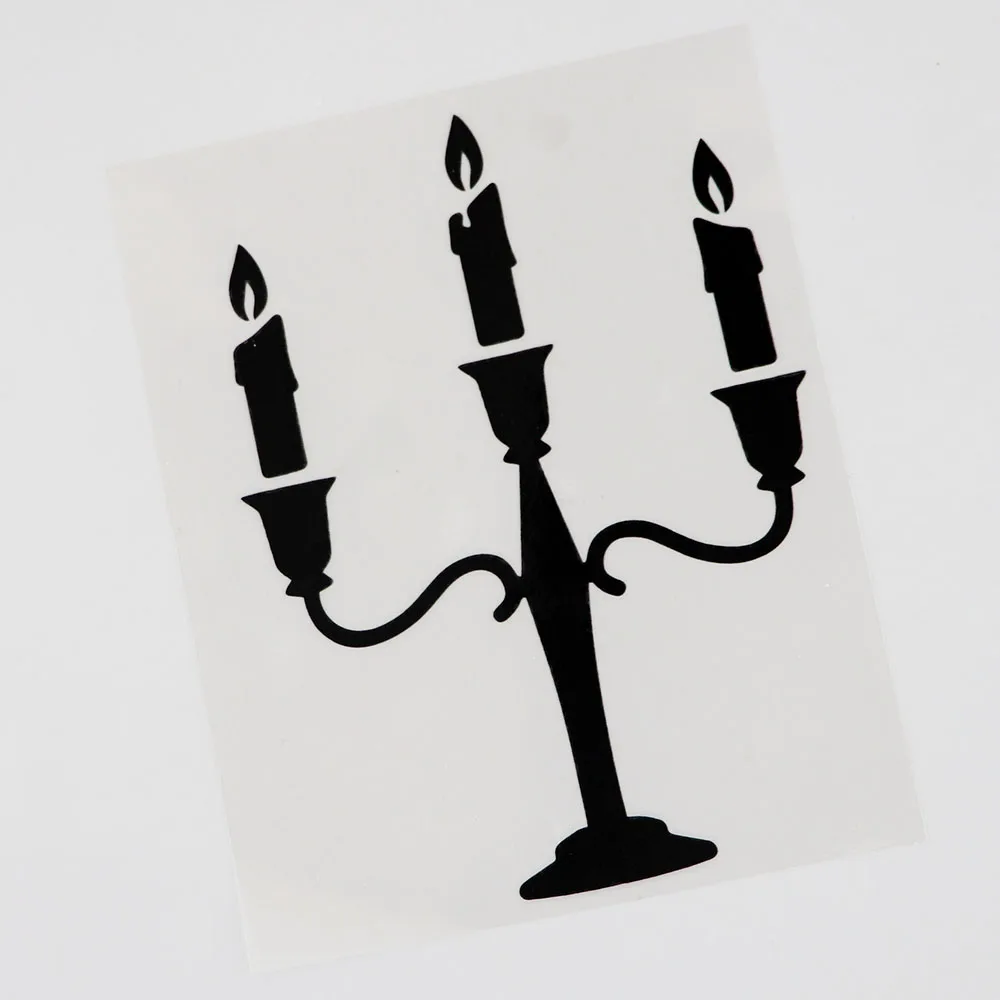 QYPF 10,6 см 14,6 см виниловый автомобильный стикер с тремя Подсвечниками и свечами черныйсеребристый 2A-0257