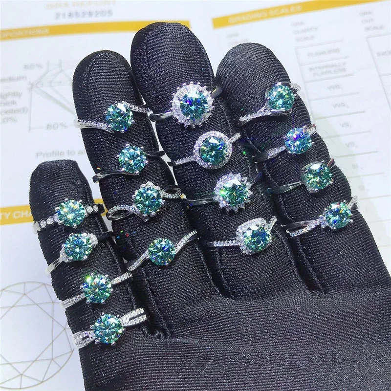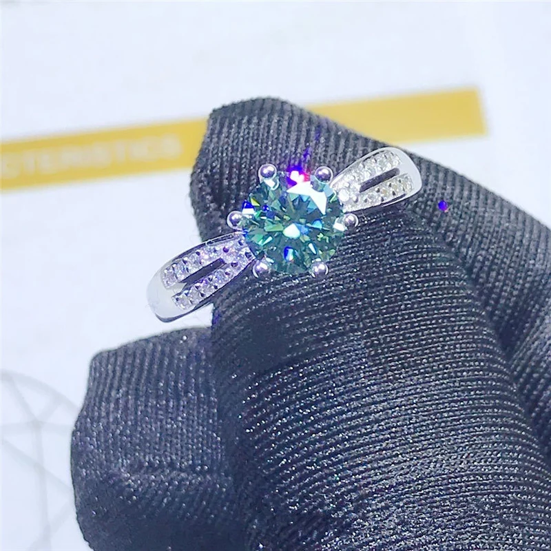 Женское кольцо с серебристым и зеленым муассанитом, 1 карат