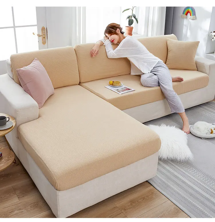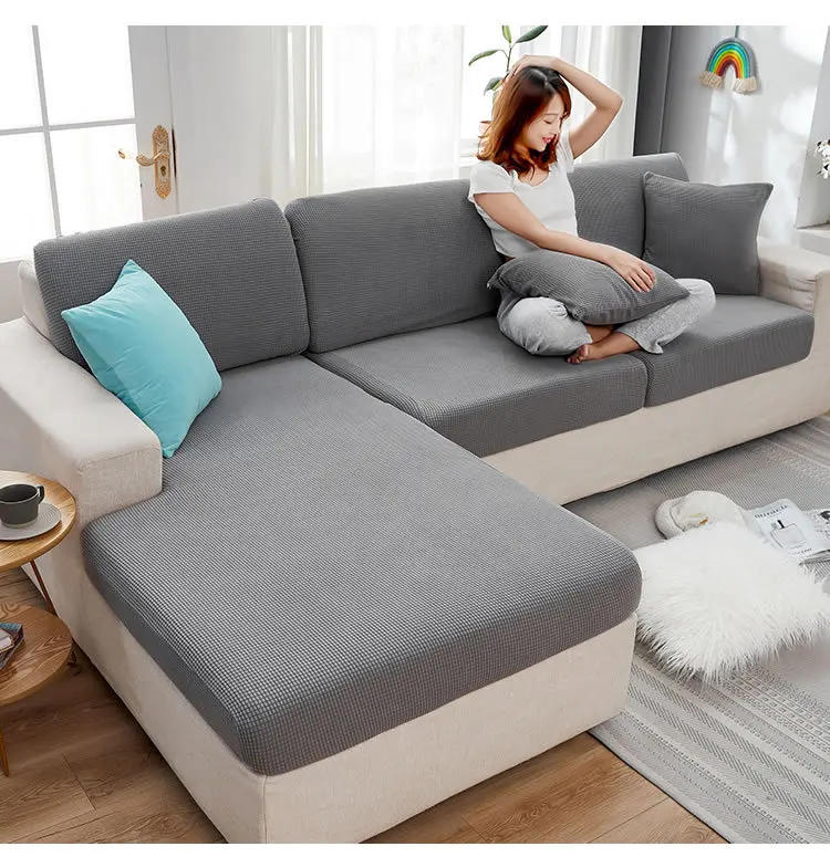Эластичные жаккардовые флисовые однотонные чехлы для диванов, Нескользящие Угловые чехлы для диванов Breif для гостиной на четыре сезона