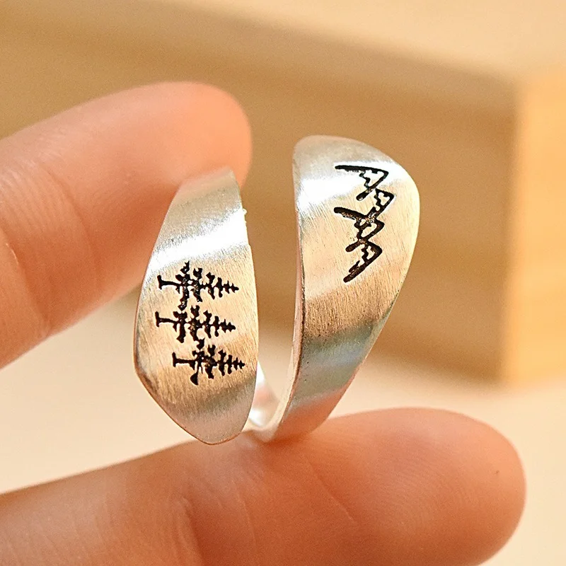Кольцо регулируемое в ретро стиле для мужчин и женщин, ювелирное изделие с резьбой по дереву и лесу, 2021