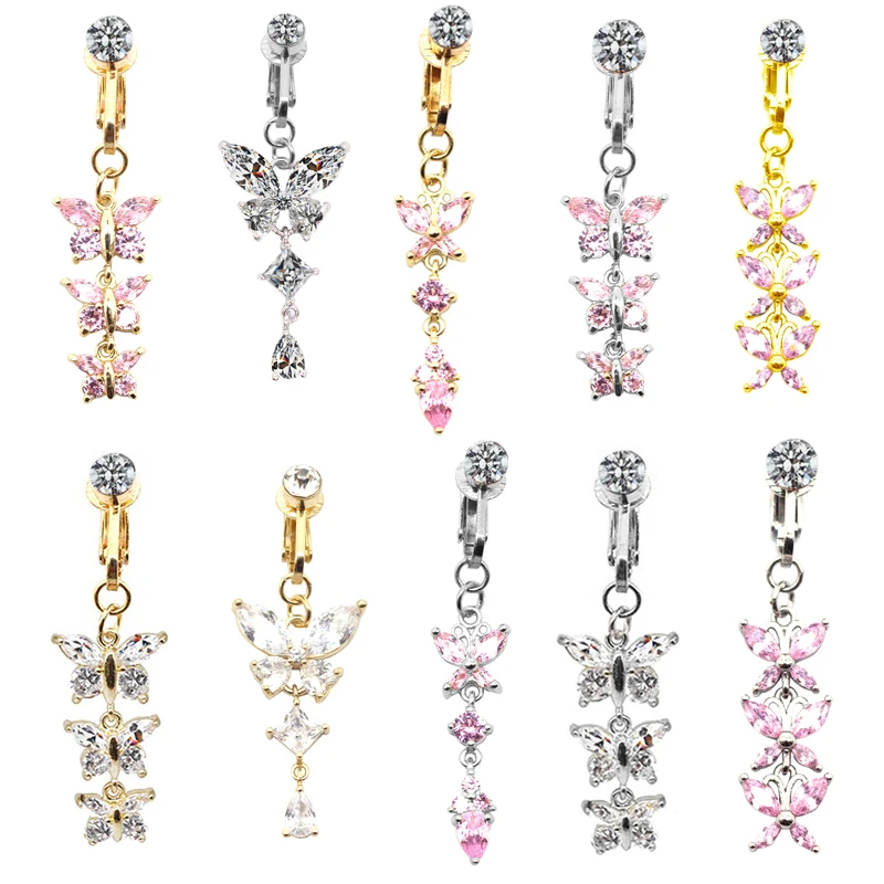 Модное ювелирное изделие для пирсинга тела из искусственной кожи, кольца в форме бабочки, пупка с фианитом, кольцо на пупок, не пирсинг, ювелирные изделия