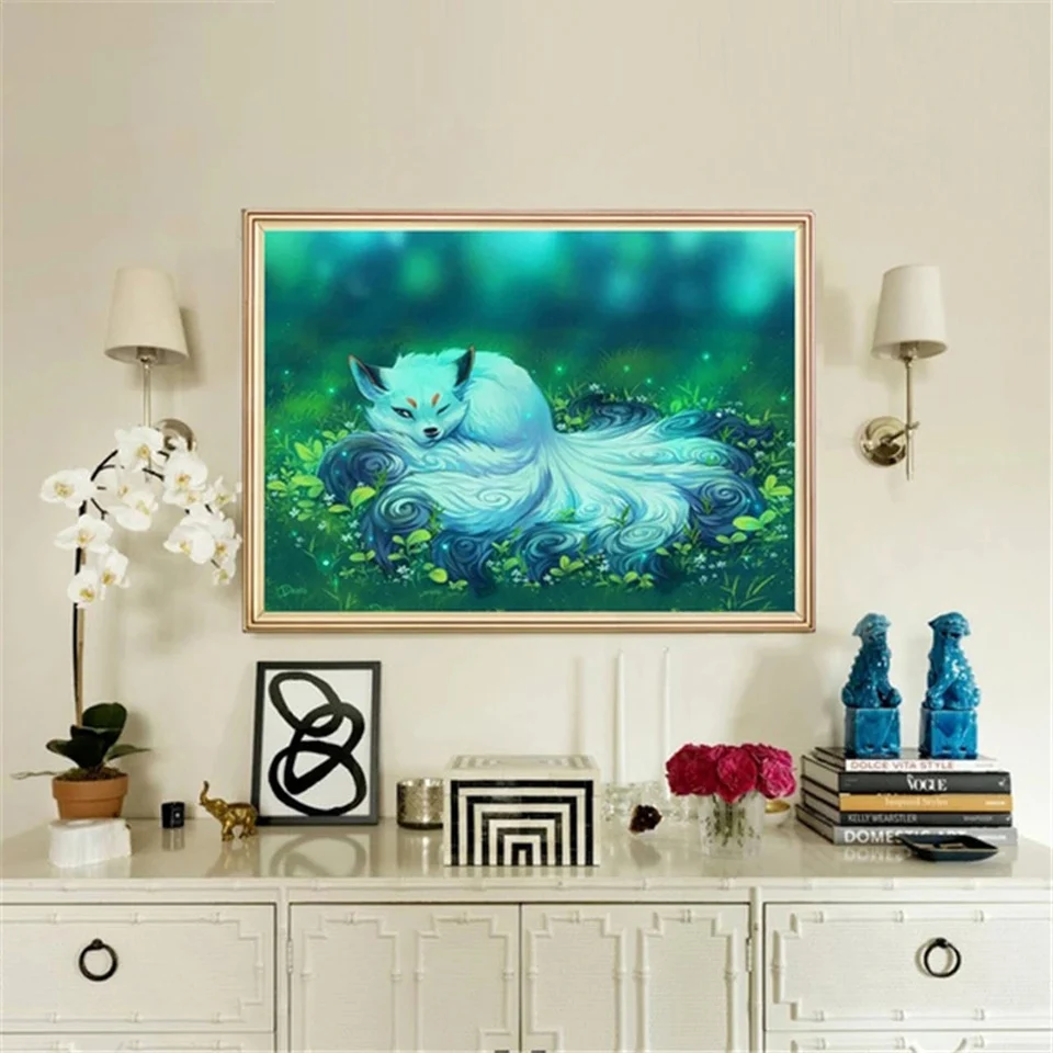 Алмазная мозаика, полный набор, девять хвостов, лиса, квадратные узоры животных Стразы 5d, алмазная живопись своими руками, настенные наклейки, домашний декор