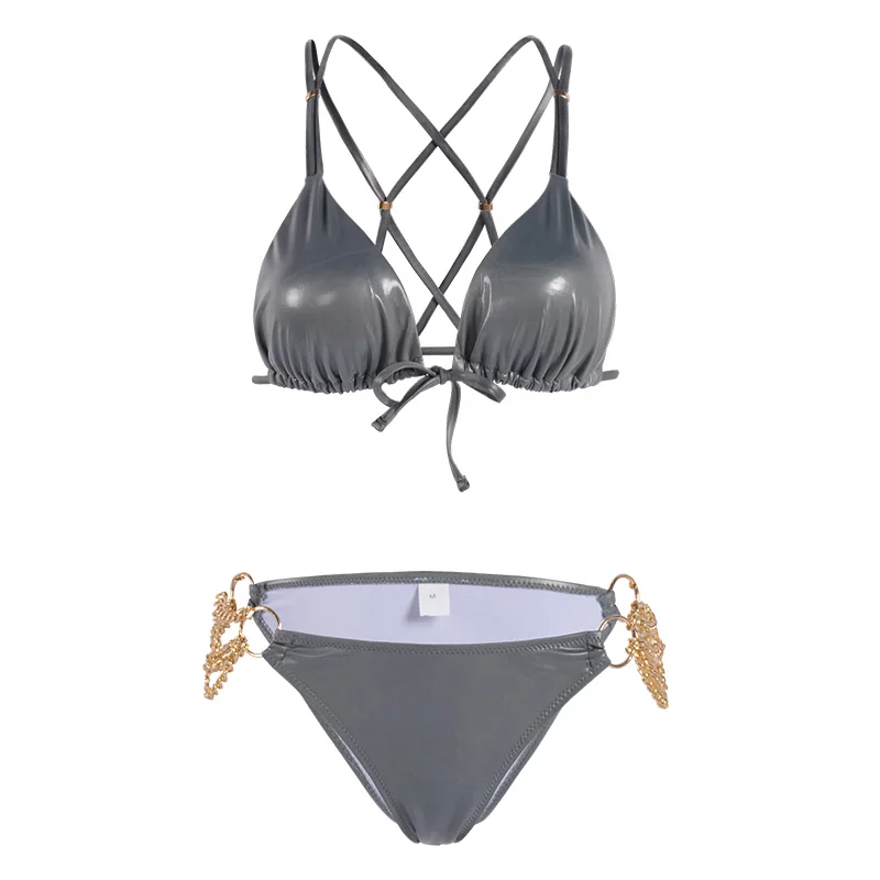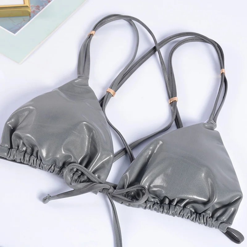Сексуальное блестящее женское бикини 2022, блестящий бразильский купальник с лямкой на шее, купальник, купальный костюм для женщин, купальный костюм розового и золотого цвета