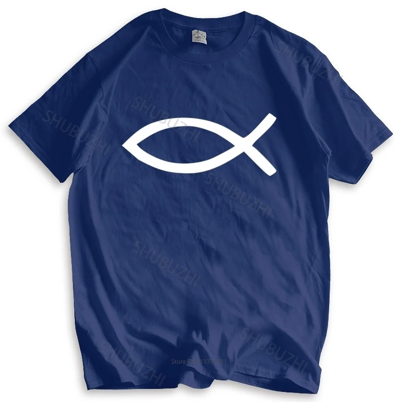 Мужская футболка с коротким рукавом, модная футболка с надписью ихтис, символ религиозной рыбы, Бог, Христос, языческий ихтис, христианский ихтис, мужские летние топы