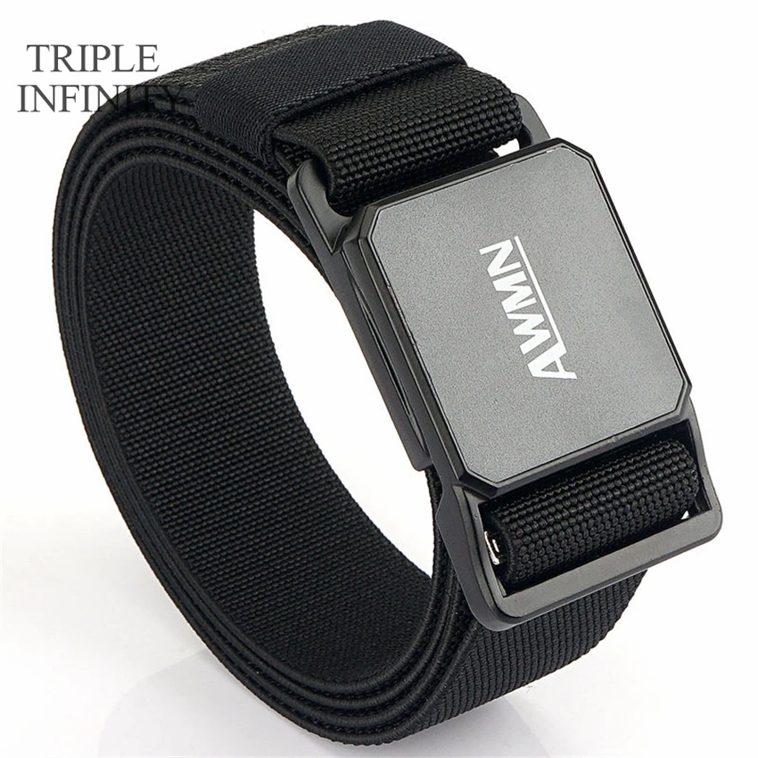 Ремень мужской с магнитной пряжкой, брендовый эластичный пояс с быстросъемной металлической пряжкой, дышащий черный, повседневный Роскошный дизайнерский