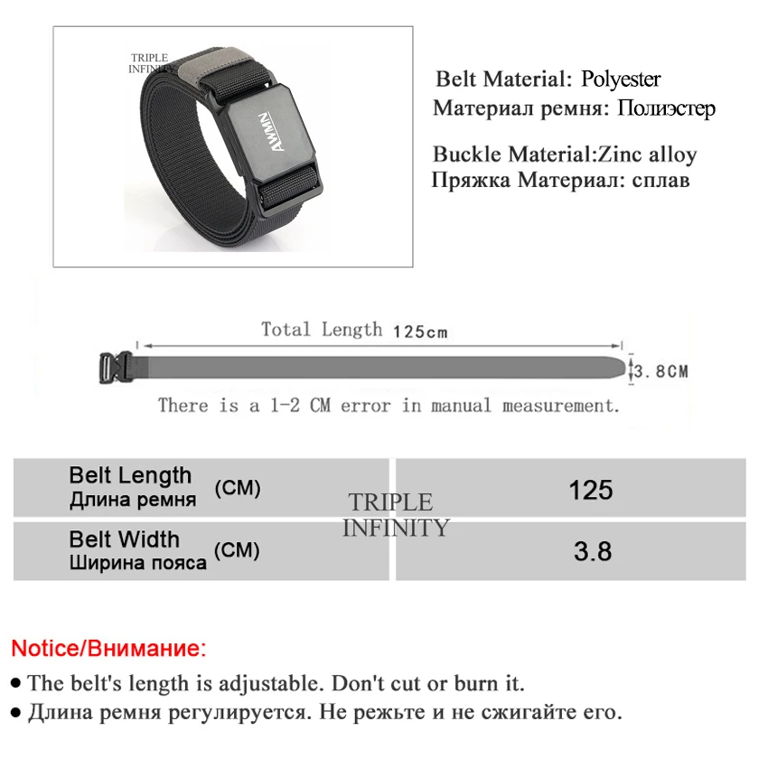 Нейлоновый ремень с тройной бесконечностью для мужчин, Регулируемый...