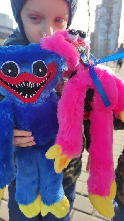Имеет более длинные руки и ноги, чем на картинке продавцов, но цвет такой же как на картинке, мягкие и пушистые, поэтому они нравятся моим поклонникам Poppy Playtime. На руках Кисси липучка, поэтому ее (ее?) Можно носить в обнимательном положении.