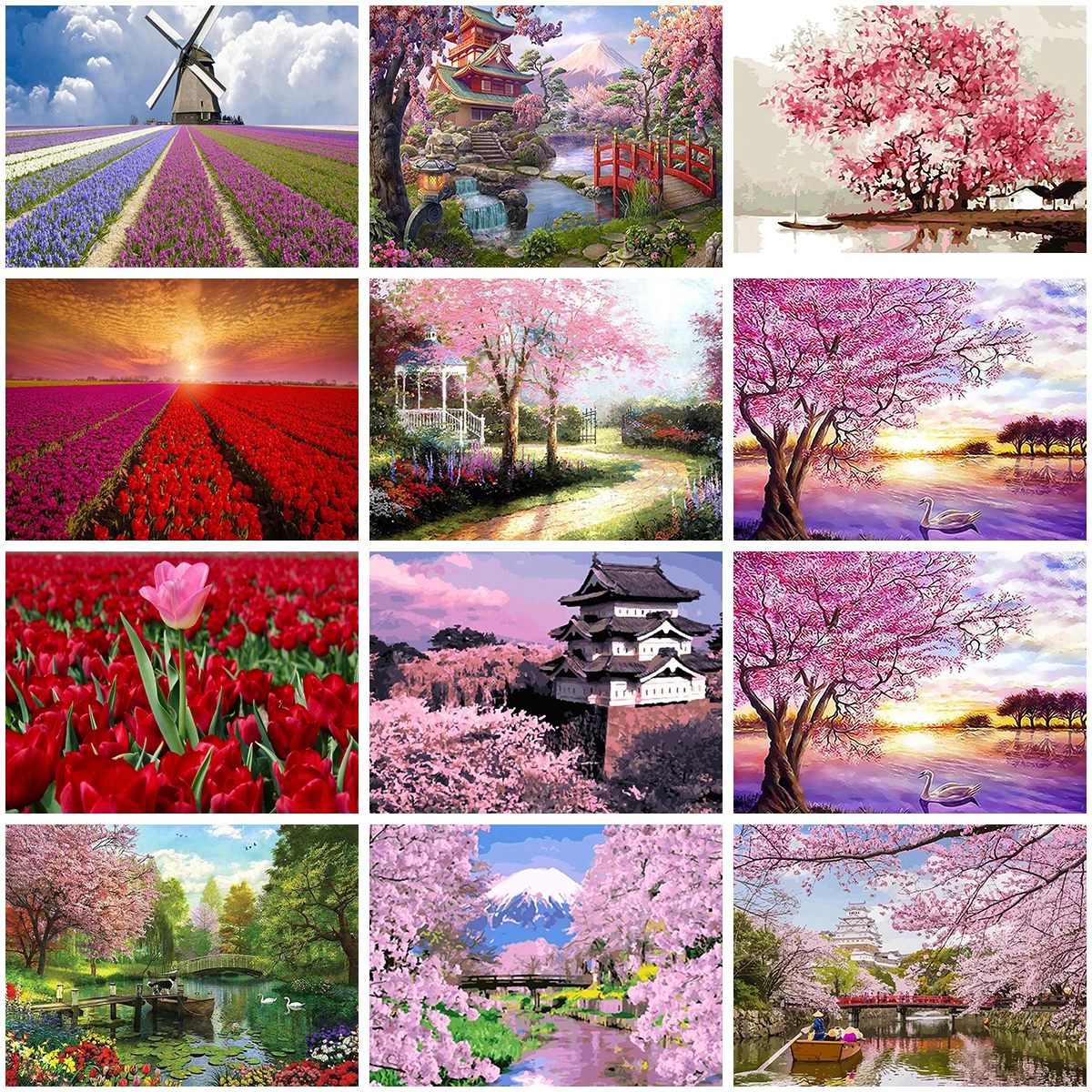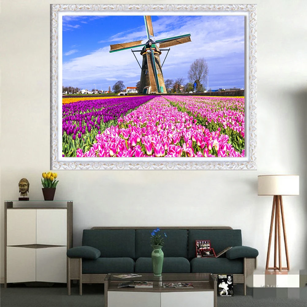 Алмазная картина 5D с изображением пейзажа, растений, цветов, вышив...