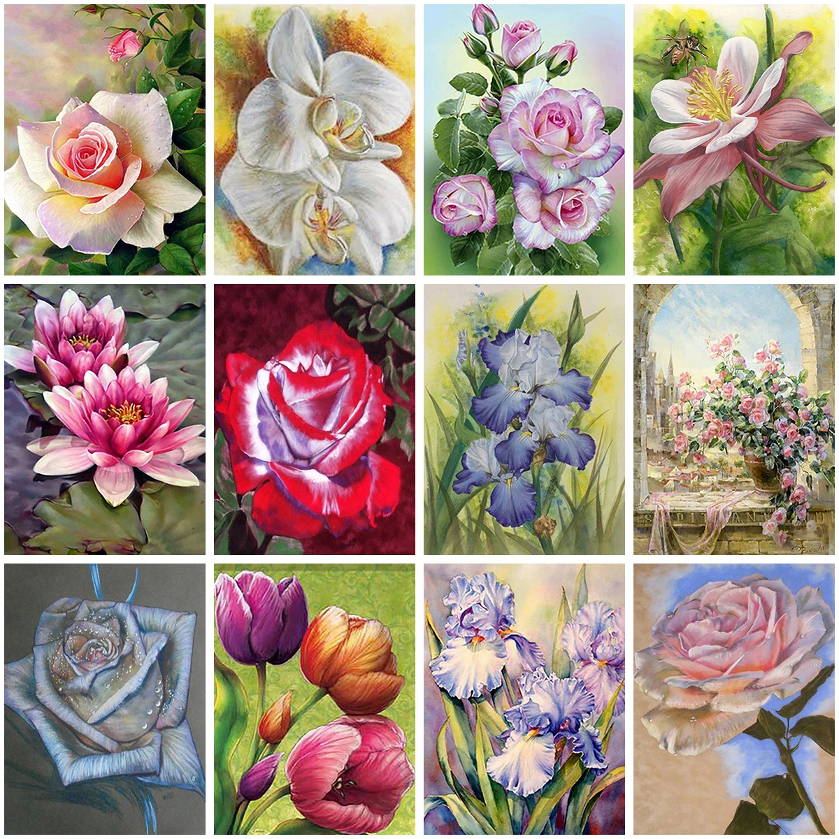 Алмазная 5D картина сделай сам, пейзаж, цветок, роза, алмазная выши...