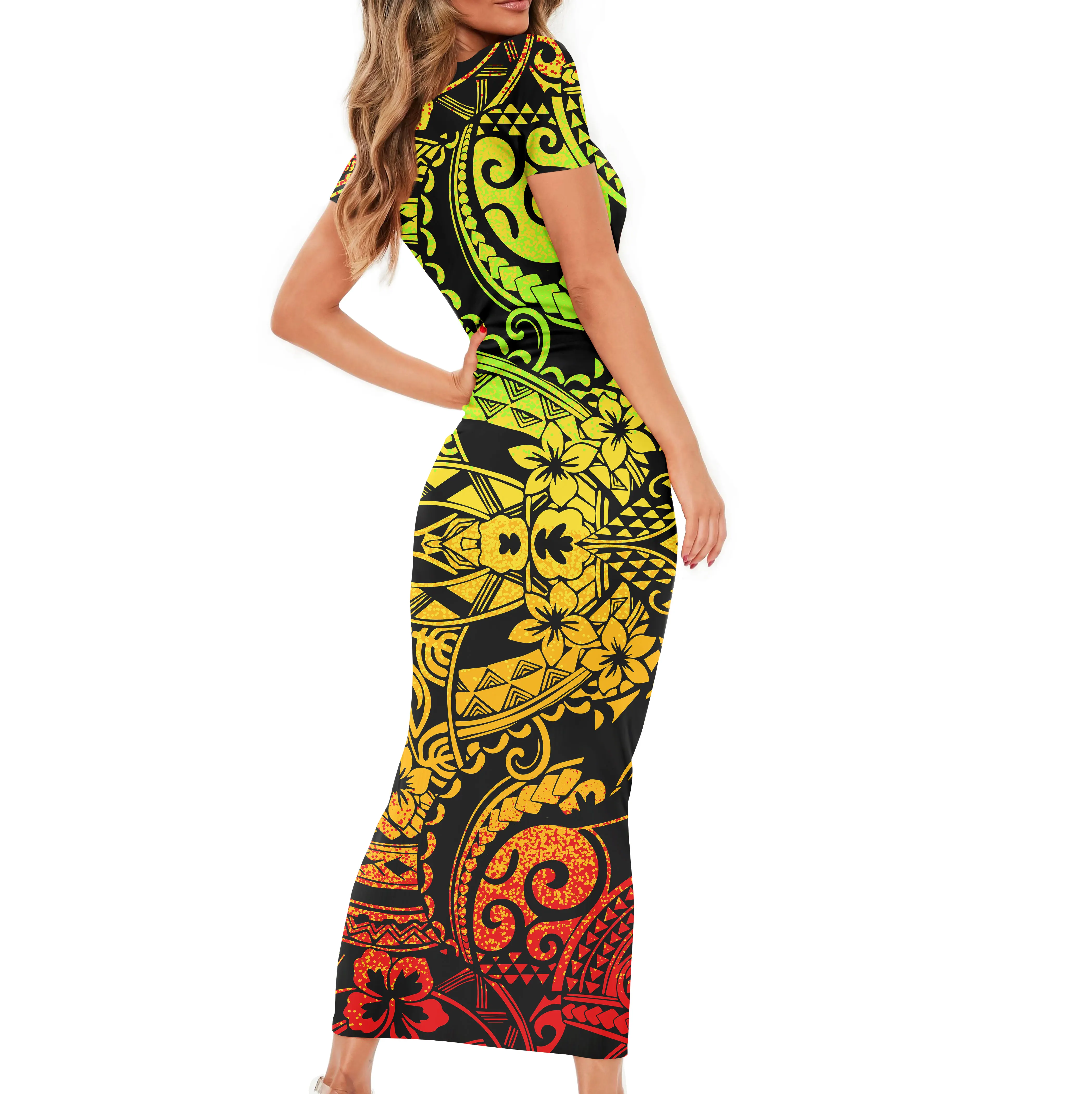 Оптовая цена, женское платье на заказ, полинезийский Племенной бордовый фон с плюмерией, женское летнее облегающее платье, новый дизайн