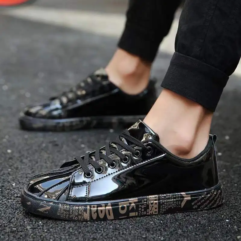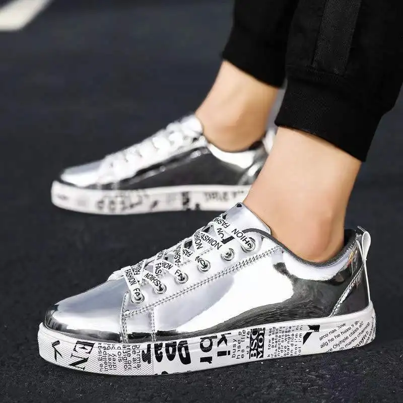 Кроссовки мужские блестящие, ПУ кожа, плоская подошва, блестящие, б...