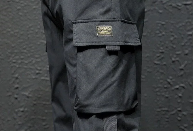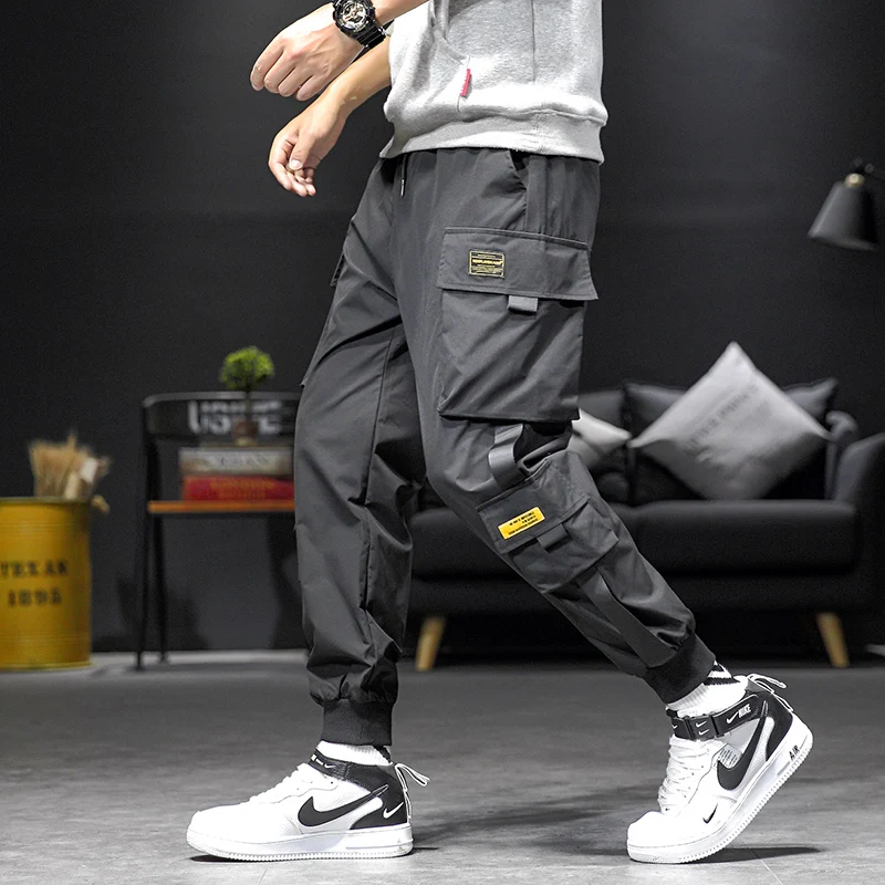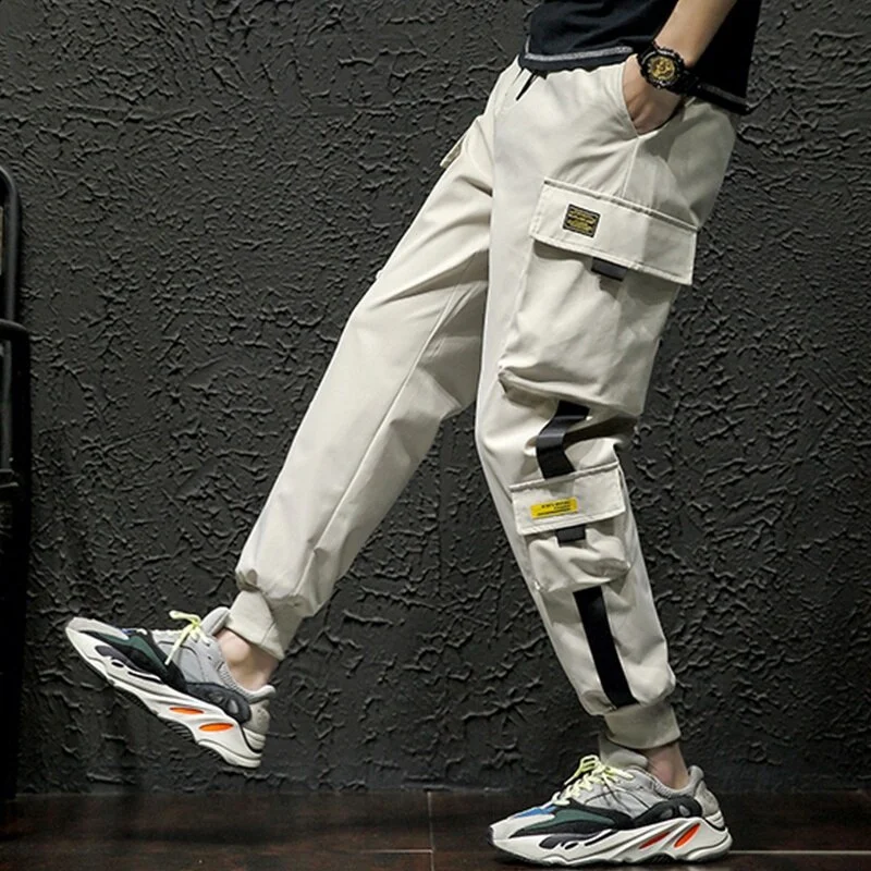 Брюки-карго мужские с лентами, Джоггеры в стиле хип-хоп, повседневные штаны, модная уличная одежда, шаровары, весна