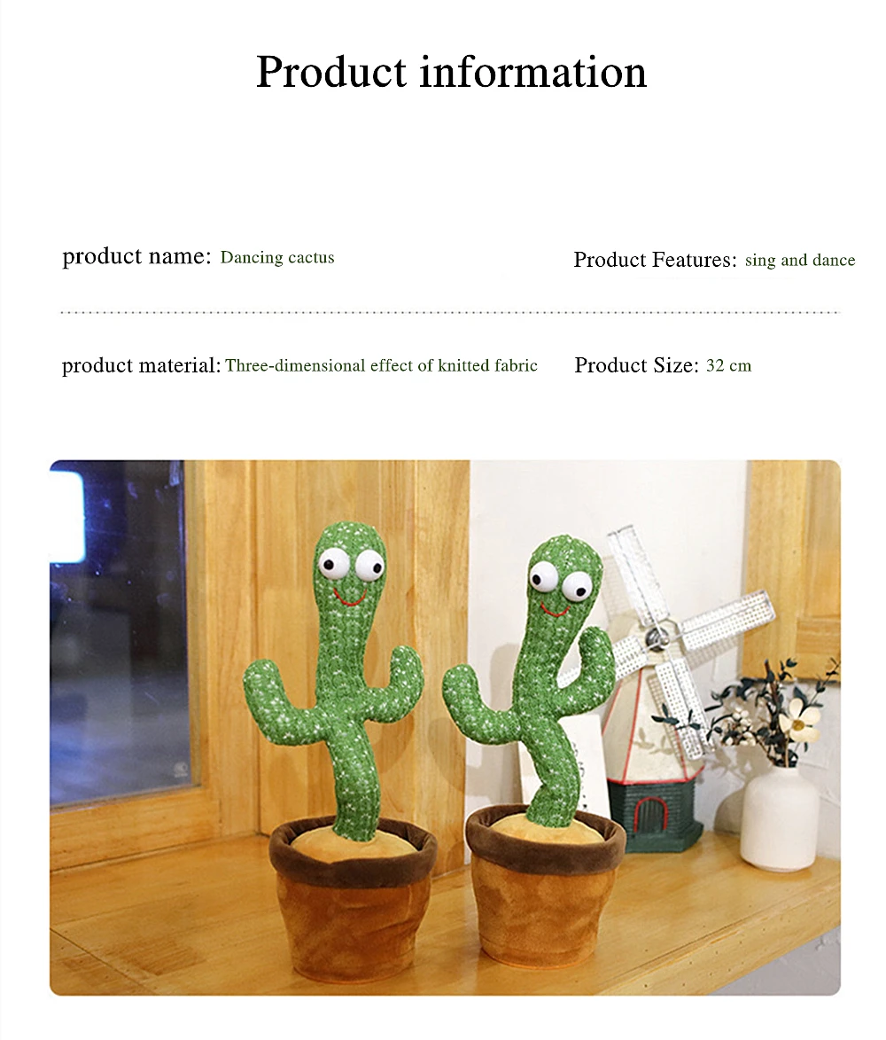 Английские песни Style1: версия батареи, поет 120 песен, [танцы + запись + Освещение + обучение говорить]Style2 русские песни: версия батареи, поет 120 песен, [танцы + запись + Освещение + обучение говорить]Style3 испанские песни: версия батареи, поет 120 песен, [танцы + запись + Освещение + обучение говорить]Style4 арабские песни: версия батареи, поет 120 песен, [танцы + запись + Освещение + обучение говорить]Стиль 5 английские песни: версия батареи, поет 3 песни100% новый и высокое качествоХарактеристика:Полипропиленовый хлопковый материал, экологически чистый и прочный.Кактус игрушки могут танцевать, спеть и приносить радость детям.Игрушка-кактус, которая может танцевать, может привлечь внимание детей и способствует раннему образованию.Фигурки кактуса-это не только развивающие игрушки, они также могут использоваться для украшения вашего дома и придания привлекательности вашему дому.Идеальный подарок для детей в качестве подарка на день рождения.Только танцевальные плюшевые игрушки кактуса, за исключением других демонстраций аксессуаров на картинке.Спецификация:Материал: полипропиленовый хлопокРазмер: приблизительно 32 см/12,60 дюймаЦвет: как показаноФункция: танцы, 120 песенАккумулятор: 3 батарейки типа АА (не входят в комплект)Количество: 1 шт.Примечания:Из-за ручного измерения допускается погрешность в 0-1 см. Пожалуйста, убедитесь, что вы не возражаете до торгов.Из-за различий между различными мониторами изображение может не отражать фактический цвет изделия. Спасибо!Посылка:1 х Танцующая плюшевая игрушка кактус