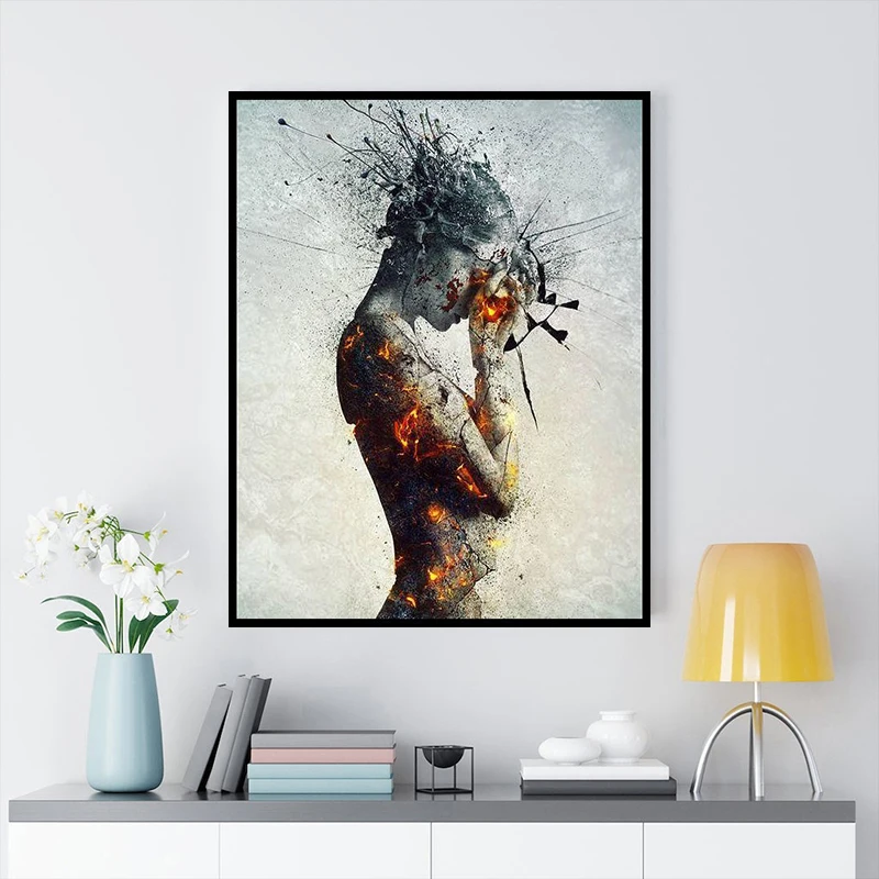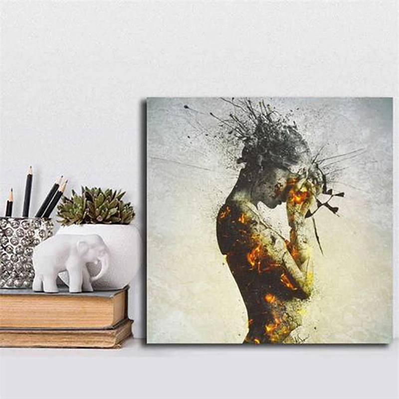 5D алмазная живопись, Модный женский огонь, цветок, фрагменты, мозаика, вышивка крестиком, настенное искусство, Набор для вышивки для домашнего декора, подарок