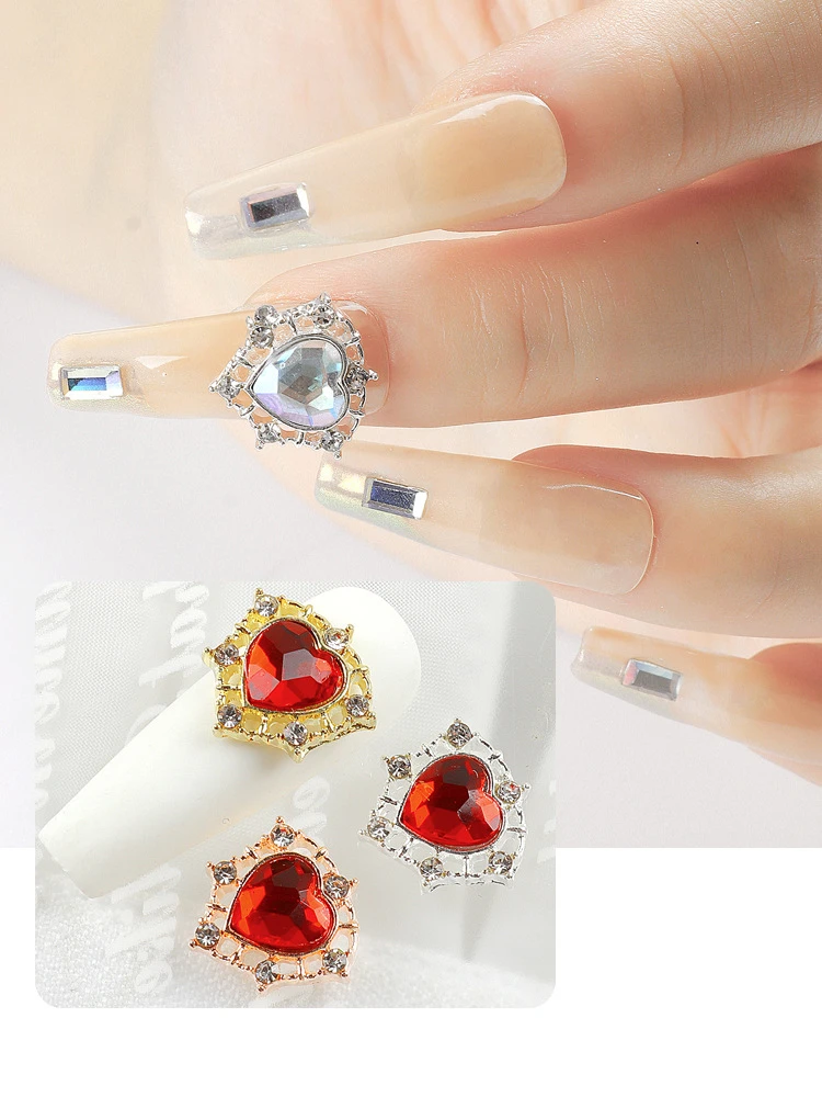 10 шт. дизайн ногтей Сердце Стразы в виде капли AB переливающиеся 3D кристаллы бриллианты Украшение Ювелирные изделия Подвески металлический сплав Золотой горный хрусталь