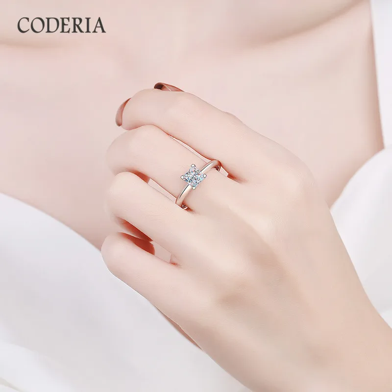 Серебряное кольцо квадратной формы с муассанитом, 1-3 карата