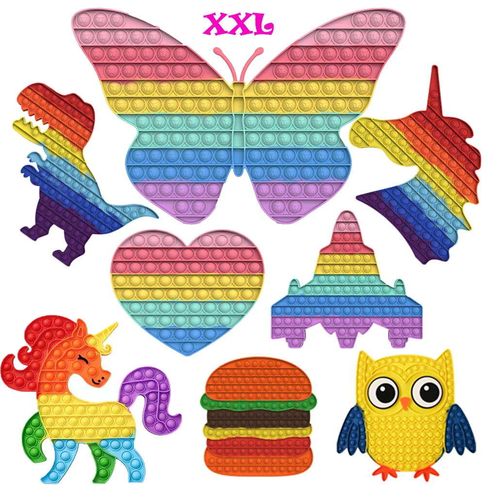Большой размер Pop XXL Пузырьковые гигантские игрушки-антистресс динозавр бабочка Единорог снятие стресса дети простой диммер подарок для детей