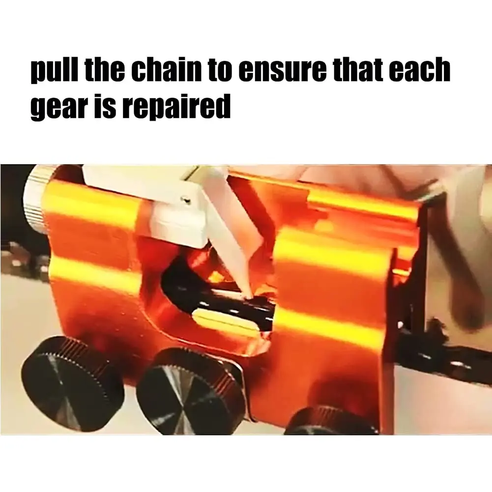 【Эффективная и точная точилка 】просто Потяните цепь, чтобы убедиться, что каждая Шестерня отремонтирована, так что ваша цепь может быть заточена в течение короткого времени, чтобы уменьшить трение.