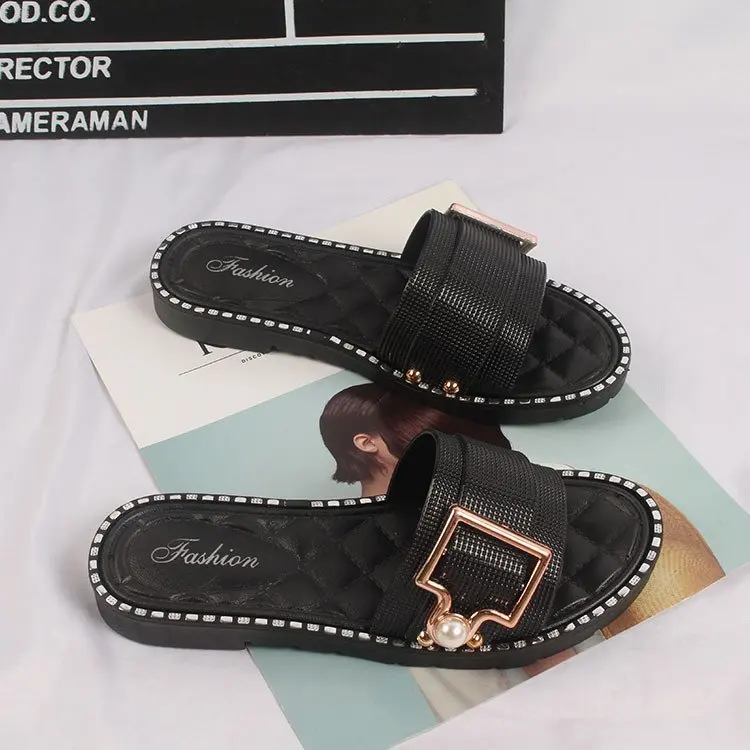 Новинка 2022, женские модные пляжные тапочки WHNB, женские сандалии на плоской подошве с кристаллами, Повседневная Уличная женская обувь