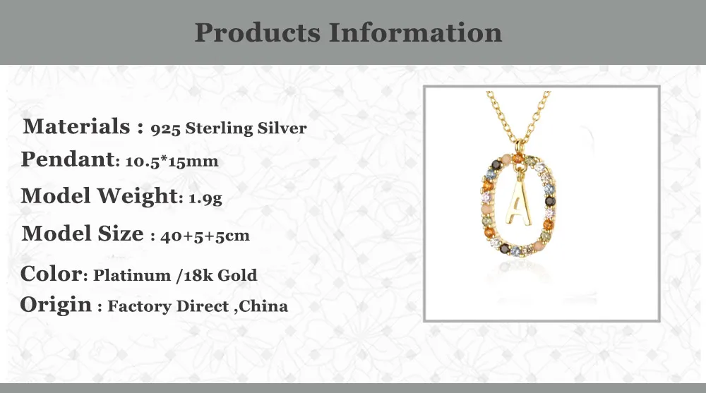 Цепочка с подвеской в виде букв алфавита, серебро 925 пробы
