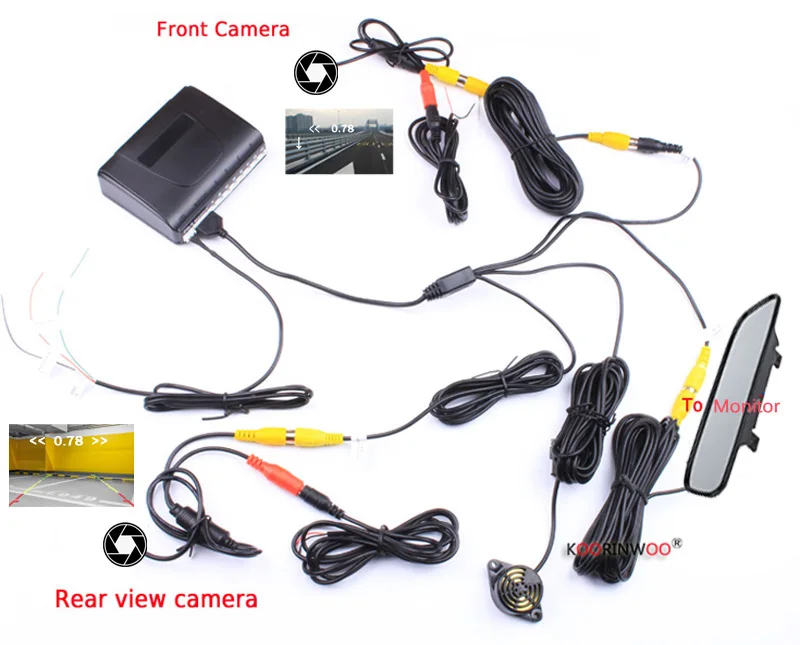 Автомобильный парковочный датчик Koorinwoo, 5-дюймовый монитор зеркала, камера заднего вида + фронтальная камера форта, инфракрасная система ночного видения, автомобильная парктроник