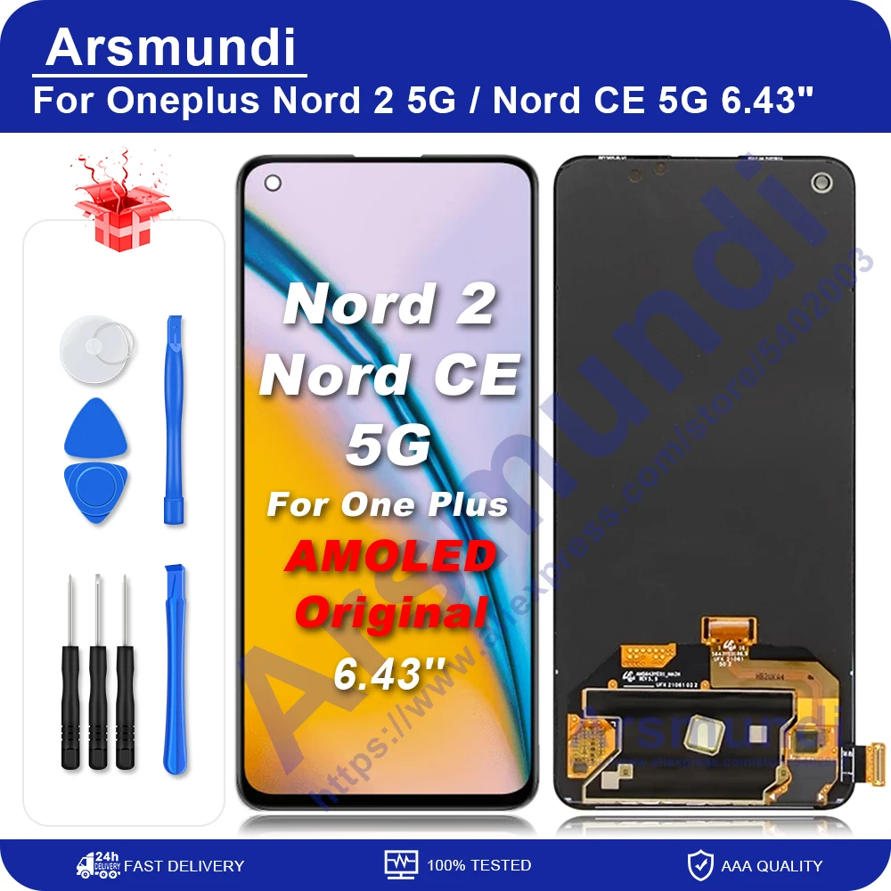Оригинальный AMOLED для OnePlus Nord 2 5G Nord2 ЖК-экран дисплей Сенсорная панель дигитайзер для OnePlus Nord CE 5G EB2101 6,43"
