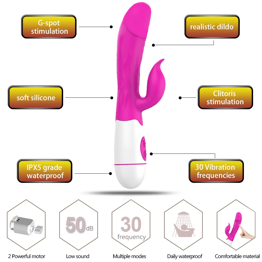 30 скоростей Вибратор для точки G для женщин фаллоимитатор мастурбация кролик вибратор вагинальный клиторальный массажер Женская стимуляция Секс-игрушки для взрослых