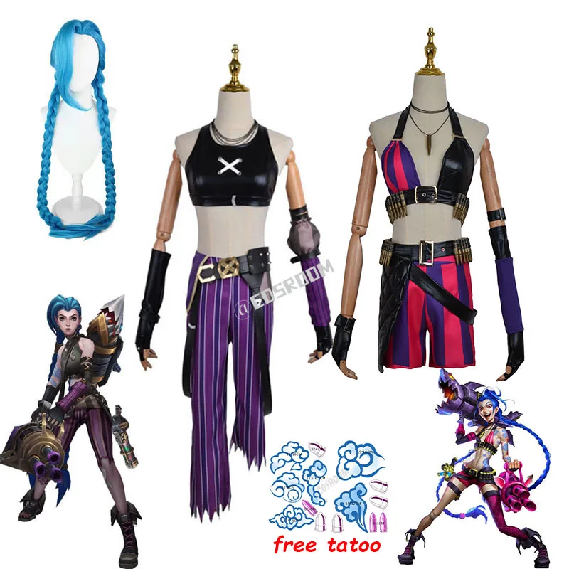 Женский костюм LoL костюм Джинкс, кожаная одежда, модные наряды для женщин, костюм Jinx Arcane для ролевых игр, карнавальные костюмы для вечеринок