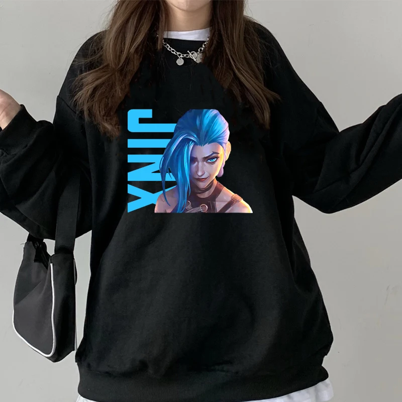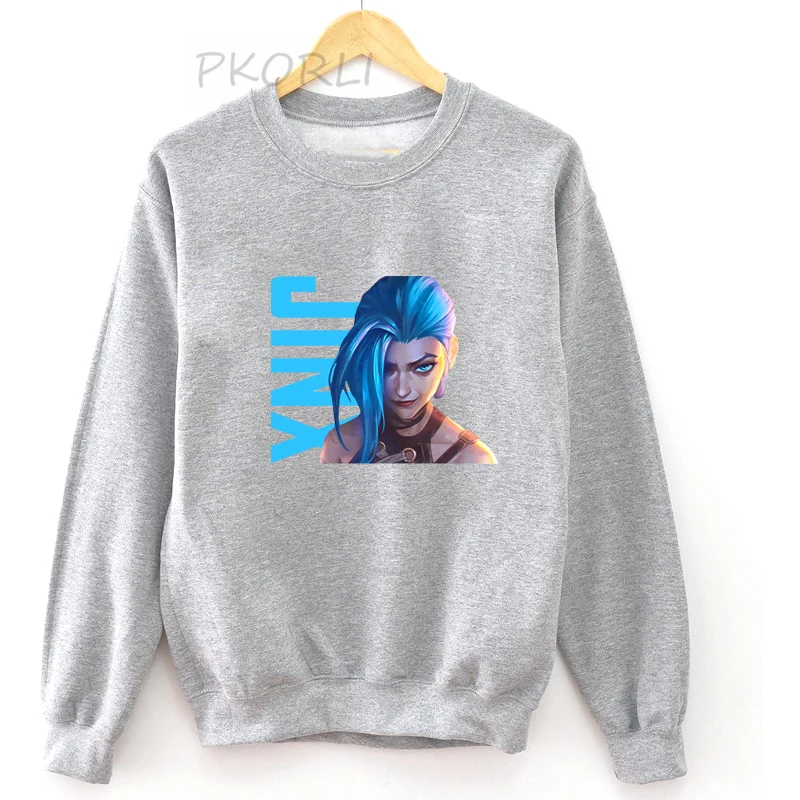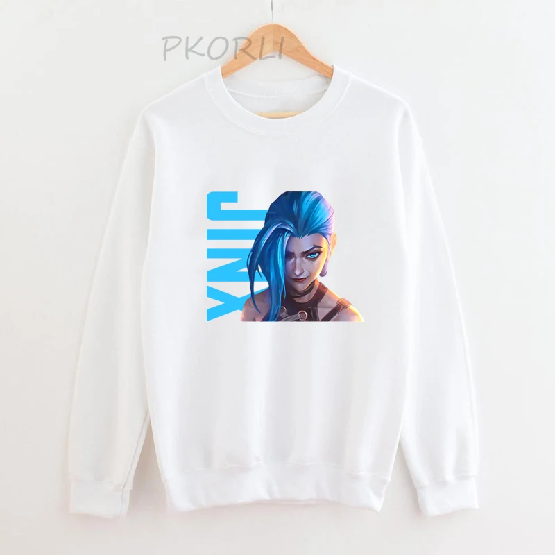 Толстовки с аниме Arcane Jinx для мужчин и женщин, весна-осень, толстовка с мультяшным принтом в стиле Харадзюку, пуловеры с принтом Arcane Netflix, женские свитера