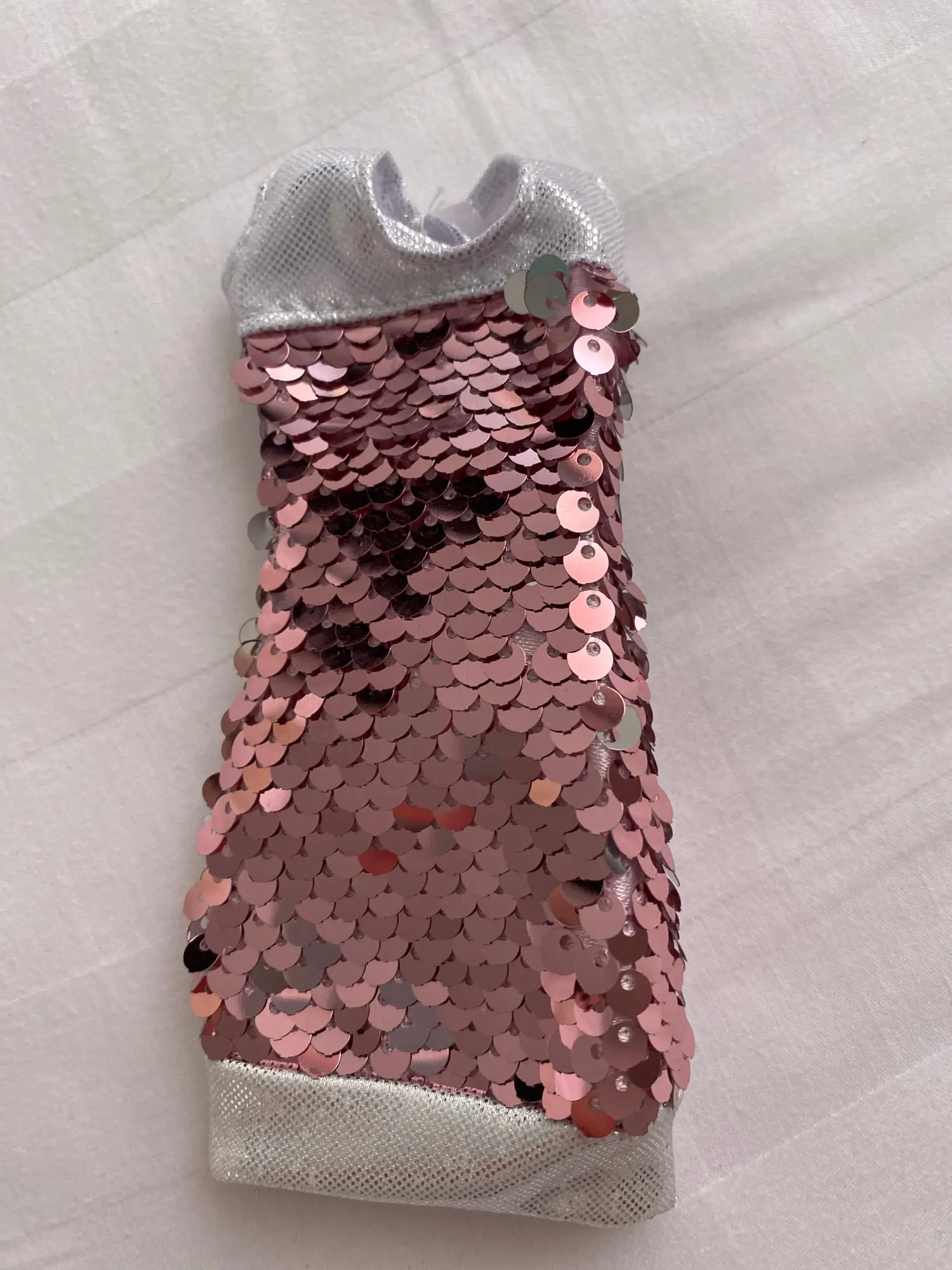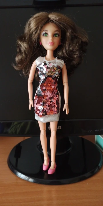 Классное платье с пайетками. Сшито аккуратно. Смотрится на кукле красиво, как и на фото продавца