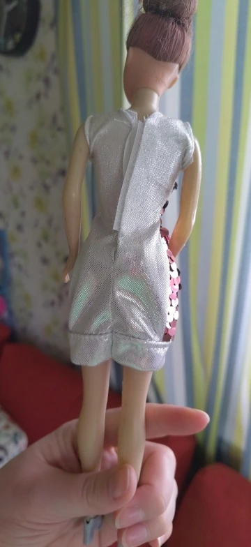 застежка-липучка грубовата, но само платье отличное. подходит на миниатюрных экшен-кукол. шло долго, упаковано отлично, отслеживалось