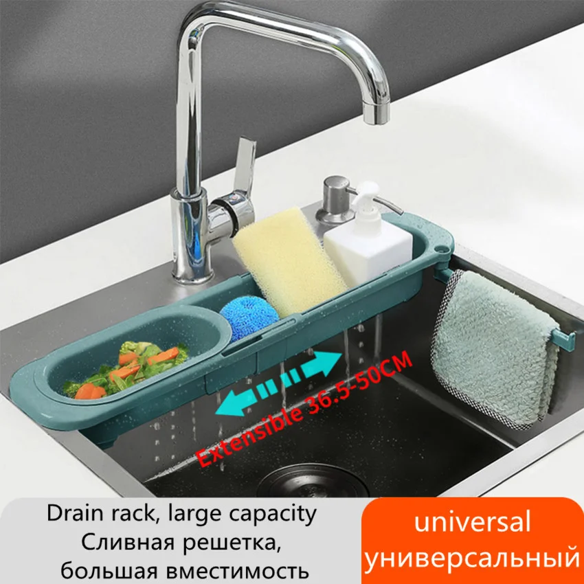 Телескопическая полка для раковины, органайзер для кухонных раковин, держатель для губки, сушилка для раковины, корзина для хранения, кухонные инструменты, гаджеты, аксессуары