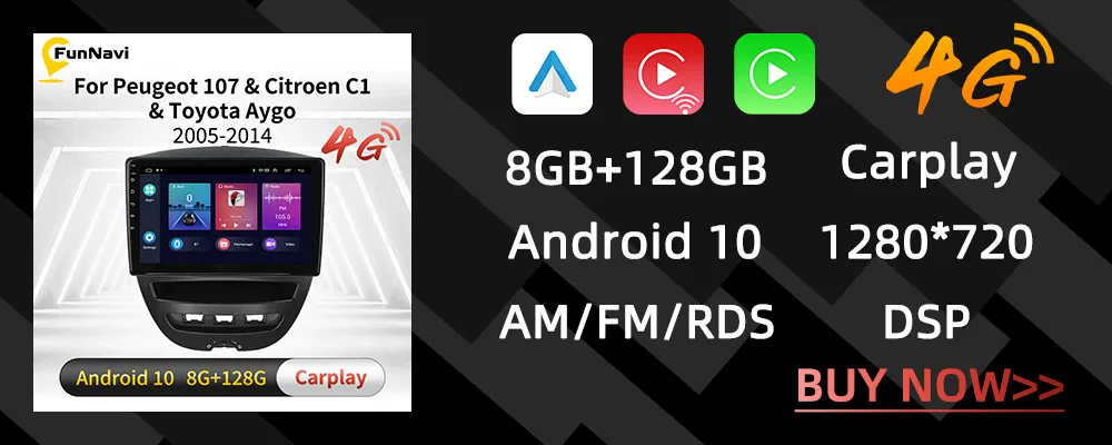 Автомагнитола 2 Din на Android для Peugeot 107, Toyota Aygo, Citroen C1, 2005-2014 дюйма, экран 10,1 дюйма, автомобильный мультимедийный плеер, навигация GPS