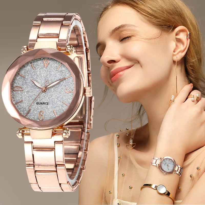 Часы наручные женские с циферблатом звездного неба, Романтические Роскошные с браслетом из розового золота