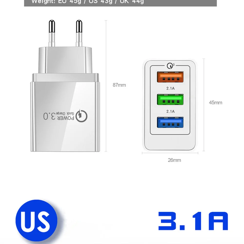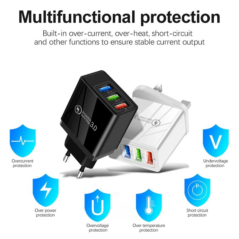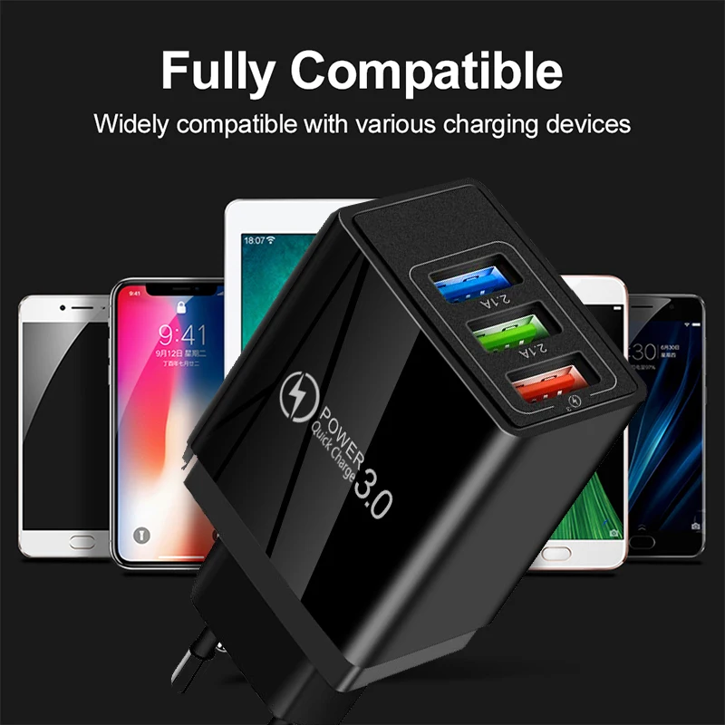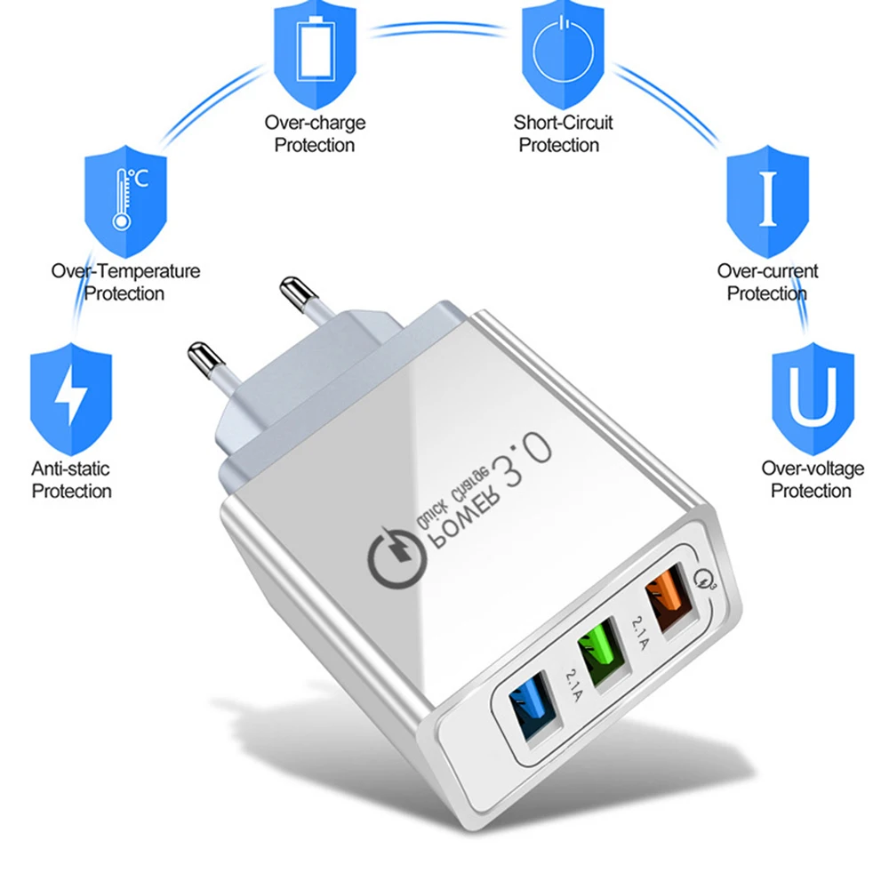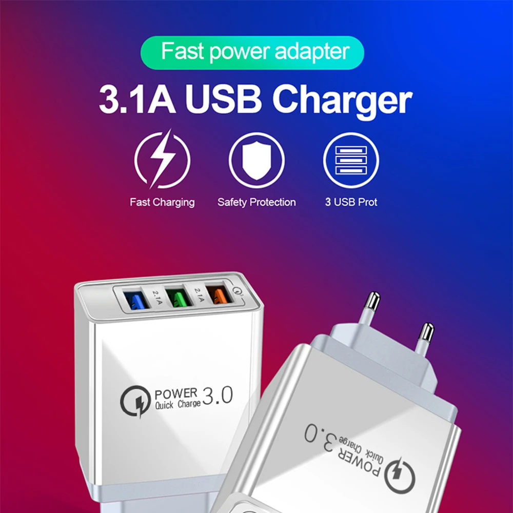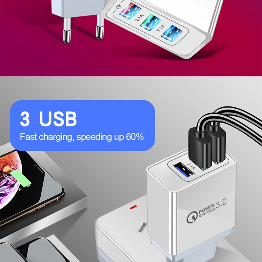 Зарядное устройство с 3 USB-портами, быстрое зарядное устройство, настенное зарядное устройство для iPhone13, 12 Pro Max, Samsung, Xiaomi, Huawei, дорожное зарядное устройство