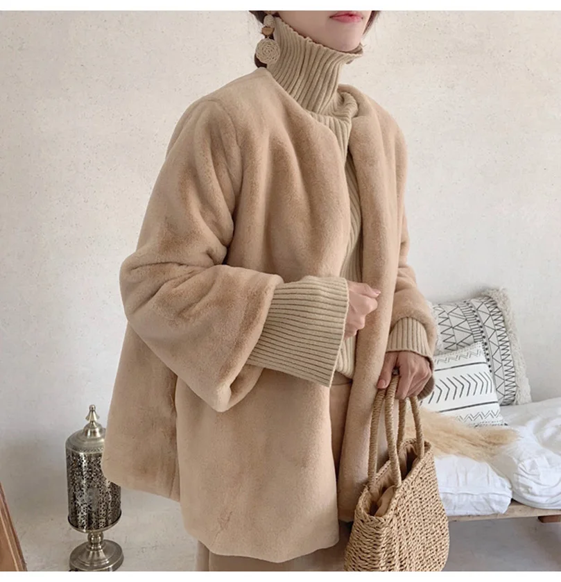 2022 весна зима новый плюшевый флис искусственный кроличий мех теплое меховое пальто женская меховая куртка для девочек женская элегантная одежда